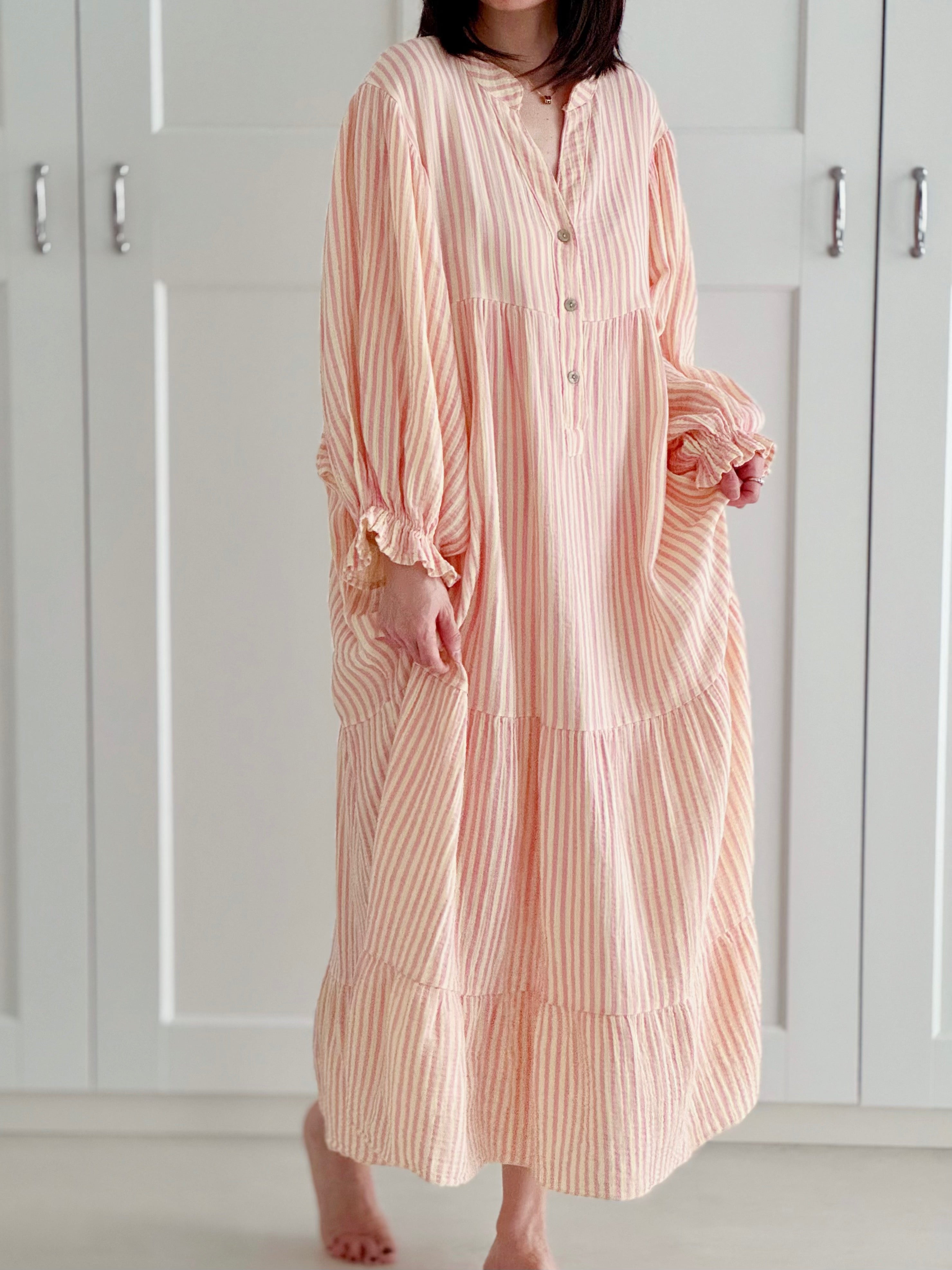 Musselin Kleid, Streifen, Classic, Gelb-Rosa