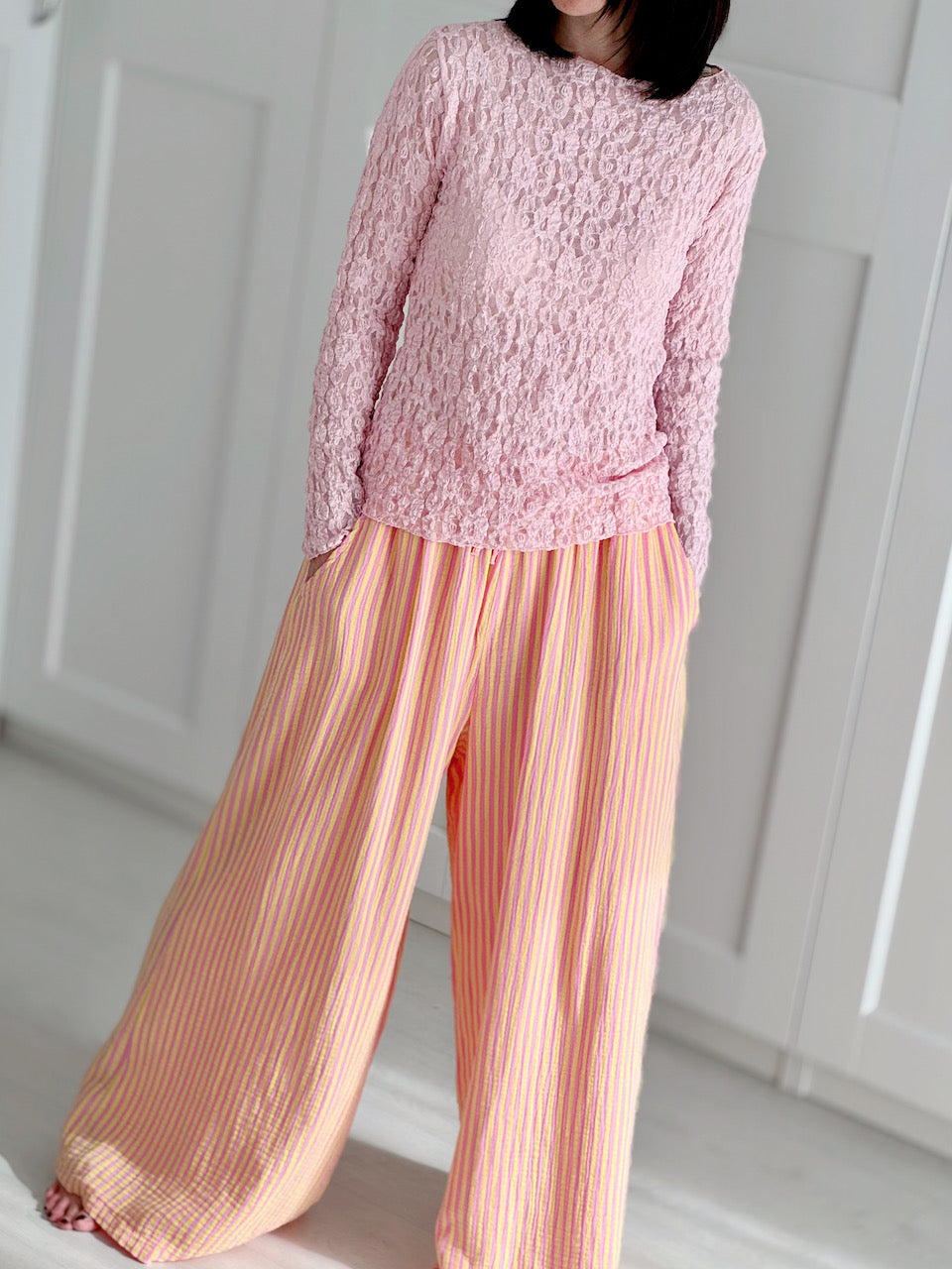 Musselin Hose, Neon-Streifen, Aprikose-Violett