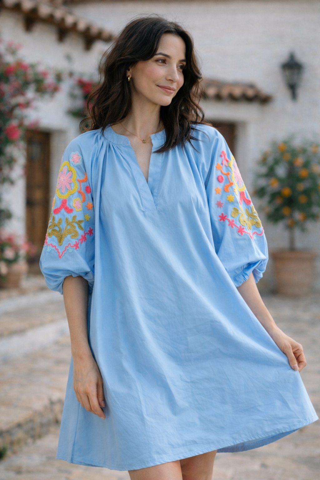 Tunika, bestickte Ärmel, 2 Farben