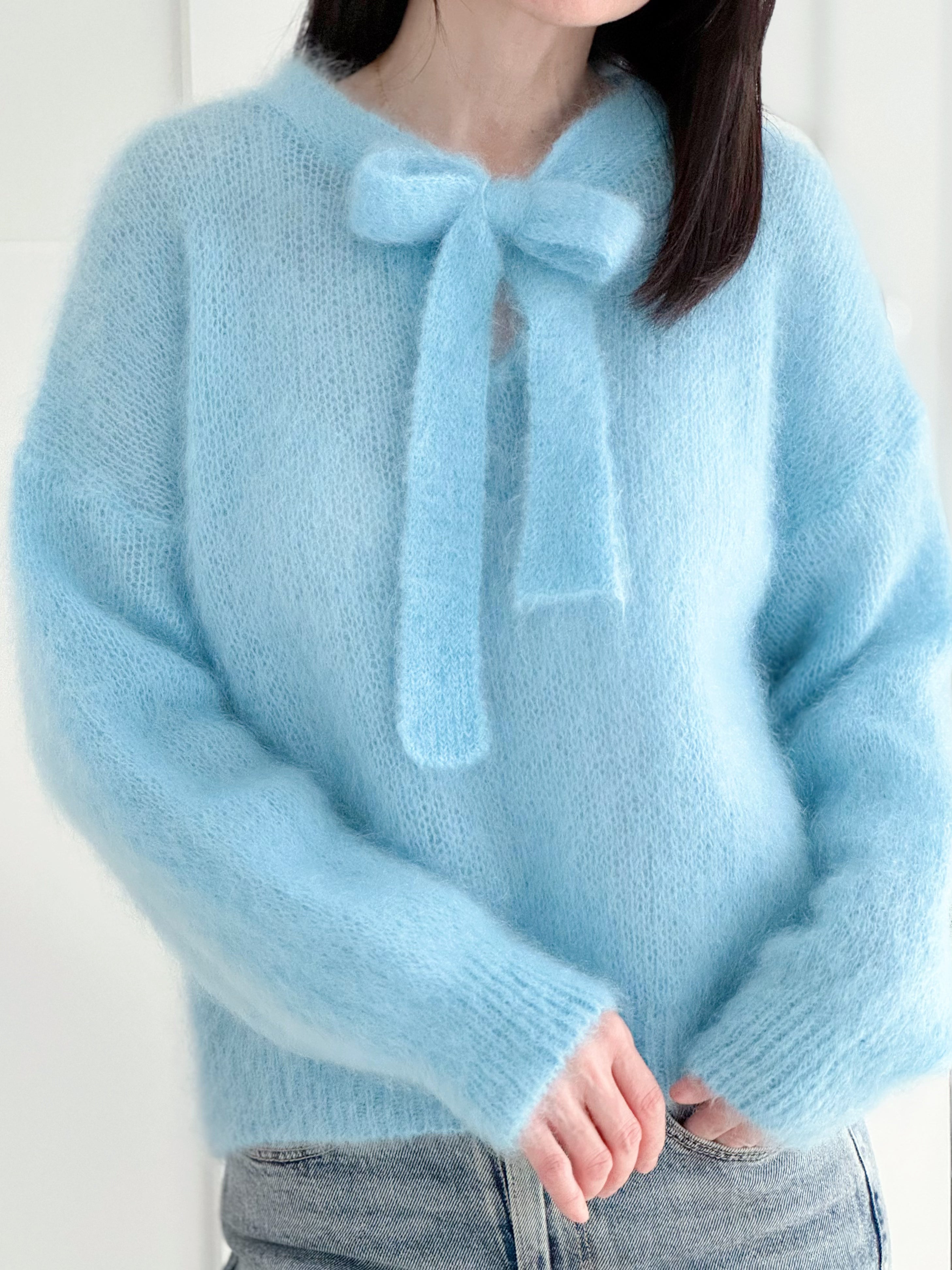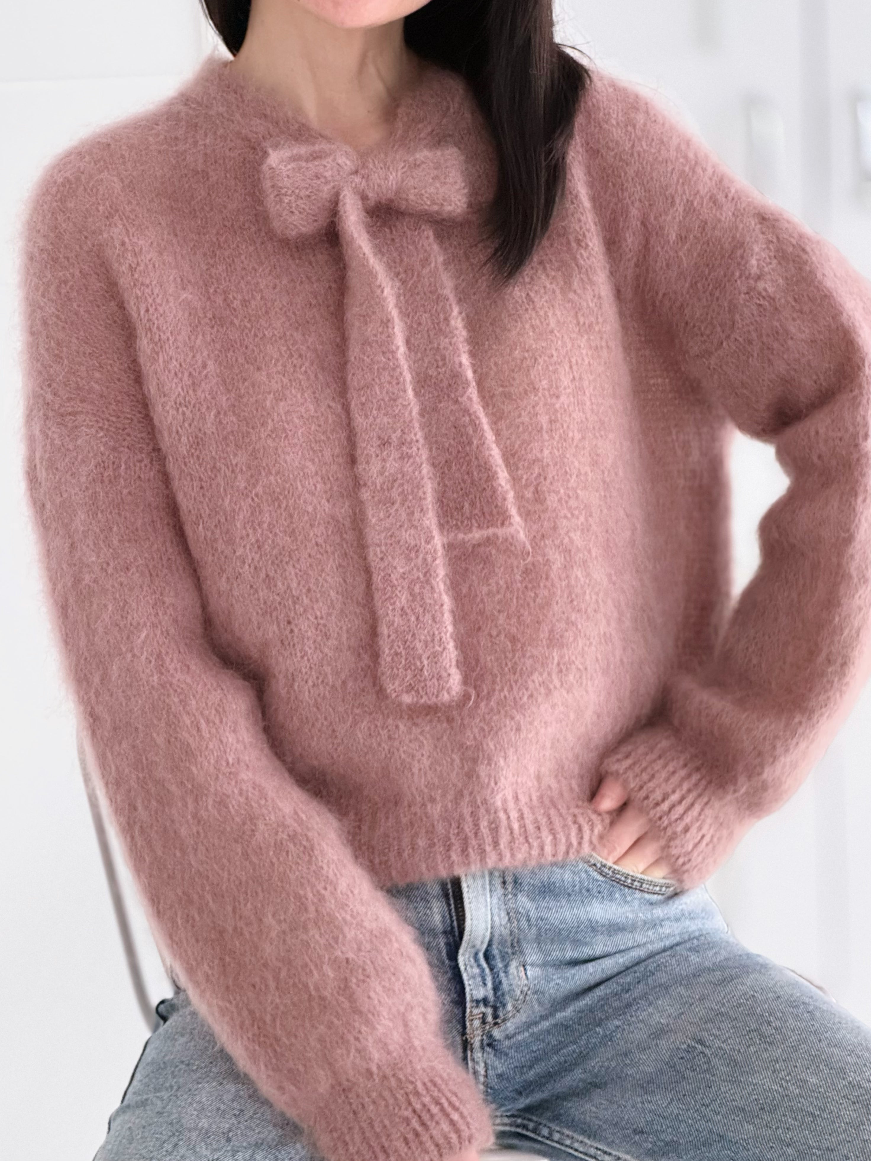 Mohairpullover mit Schleife, 2 Farben