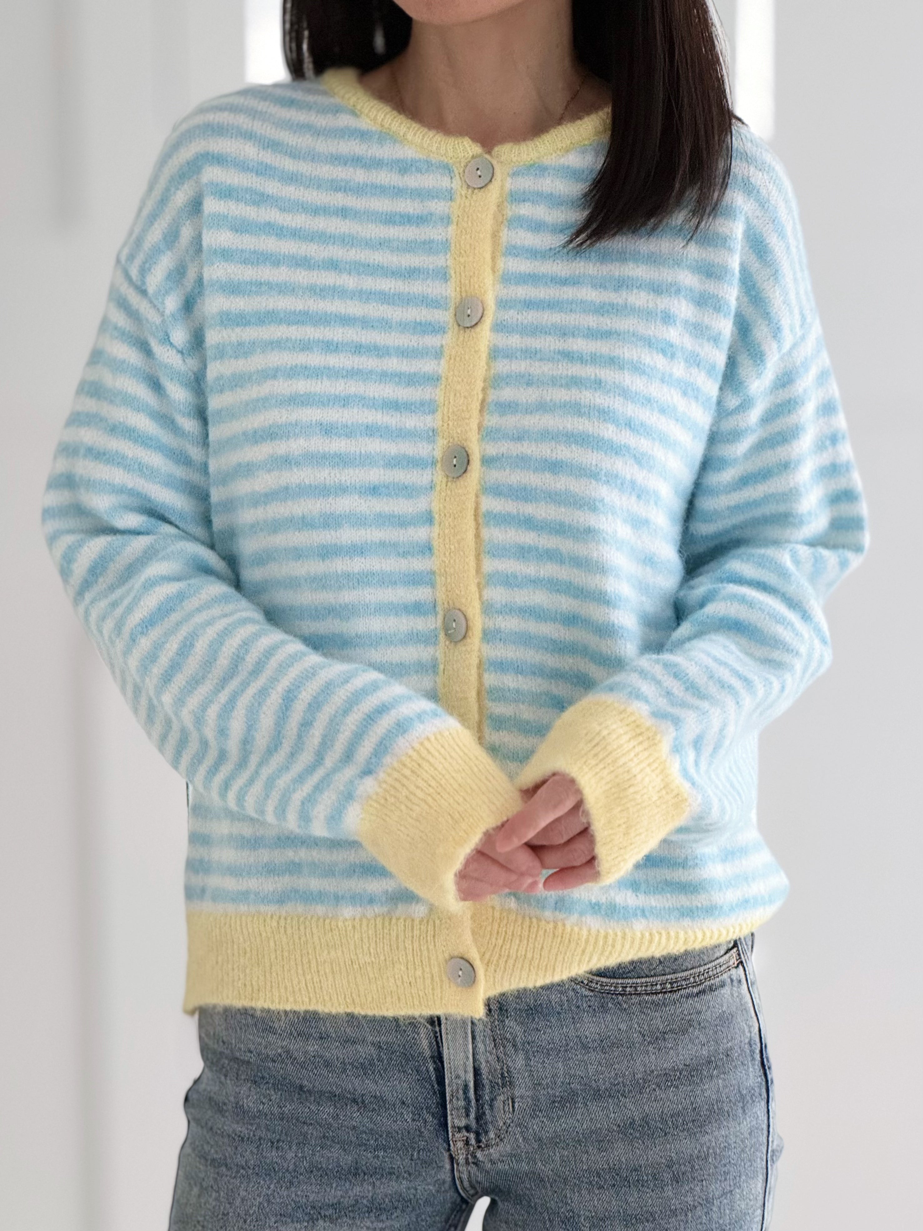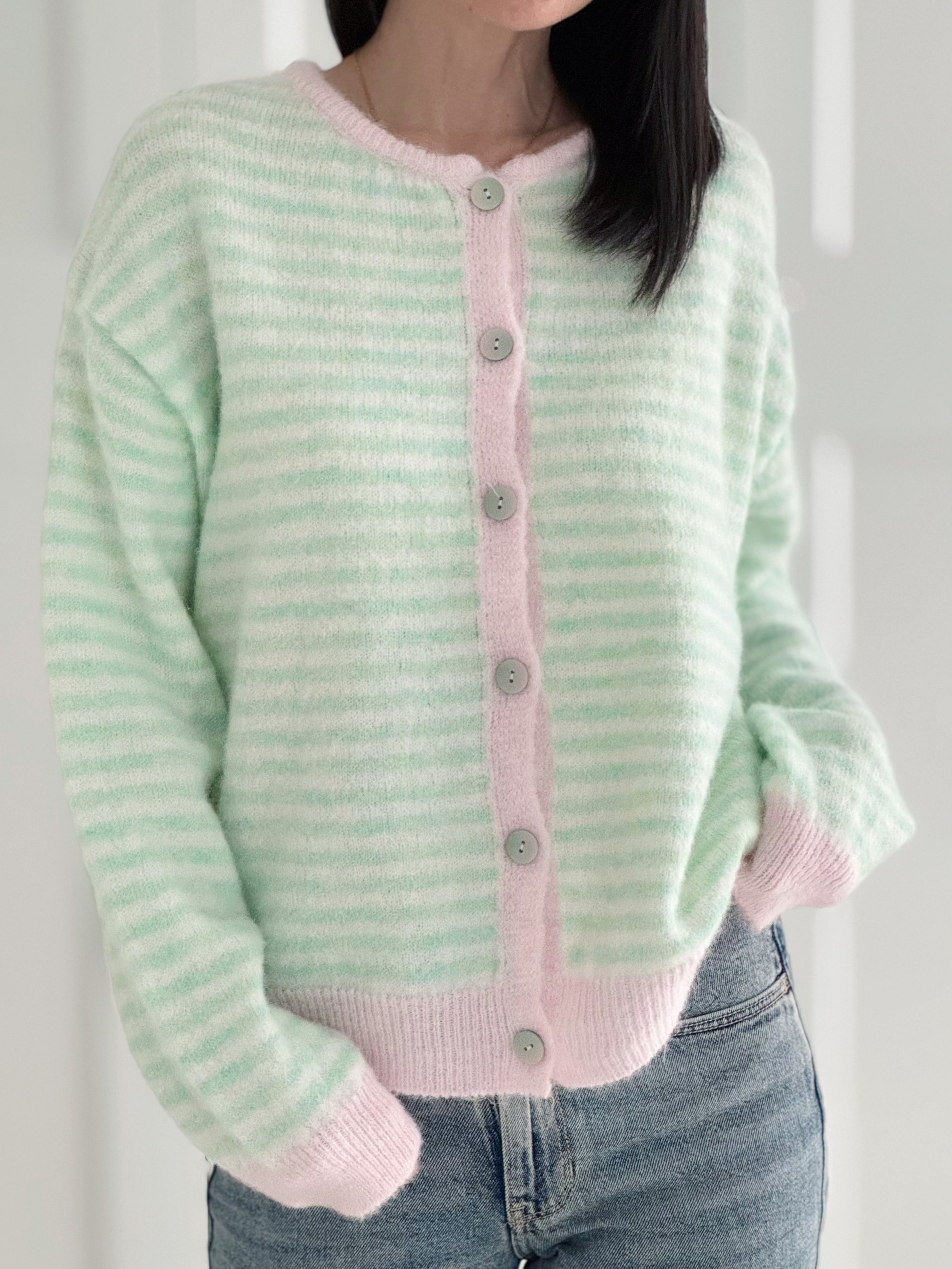 Cardigan, Stereifen & Kontrastbünchen, 3 Farben