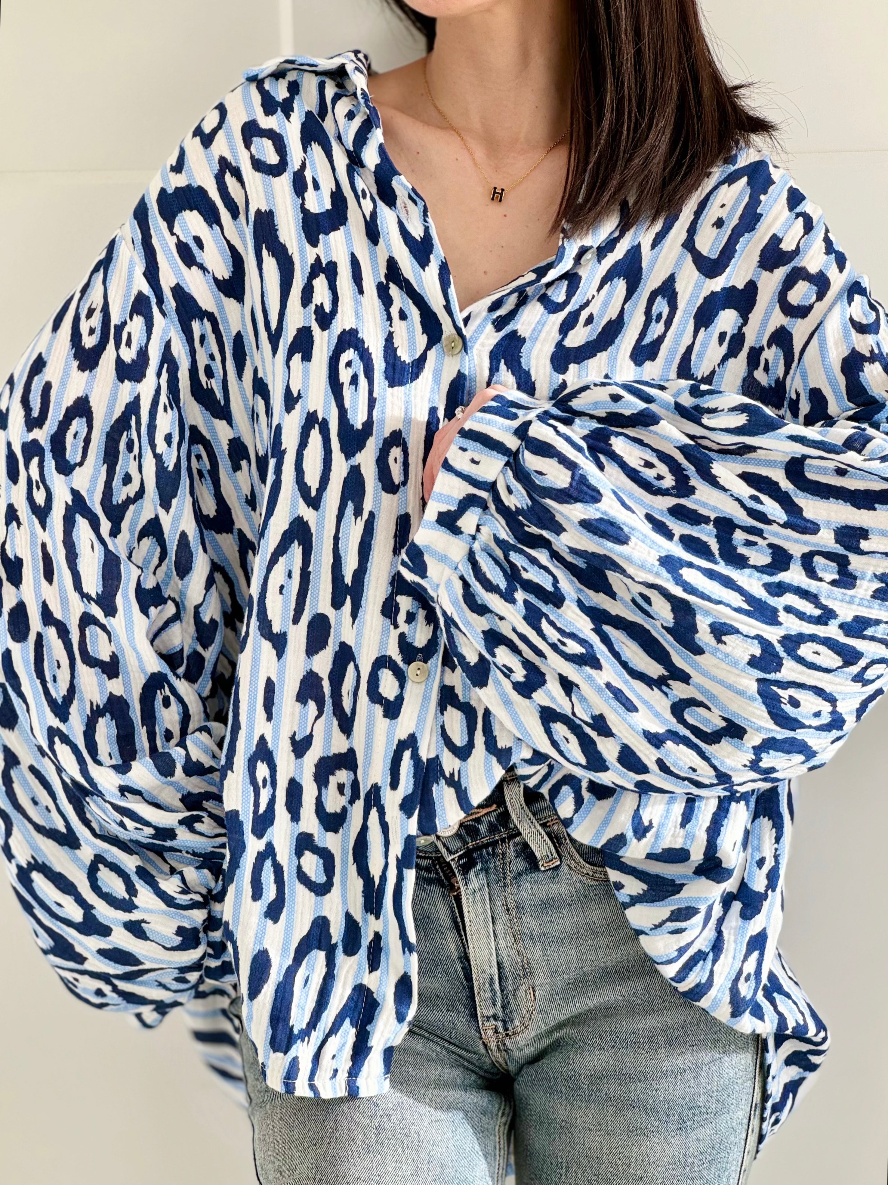 Musselin Bluse, Leo & Streifen, 5 Farben