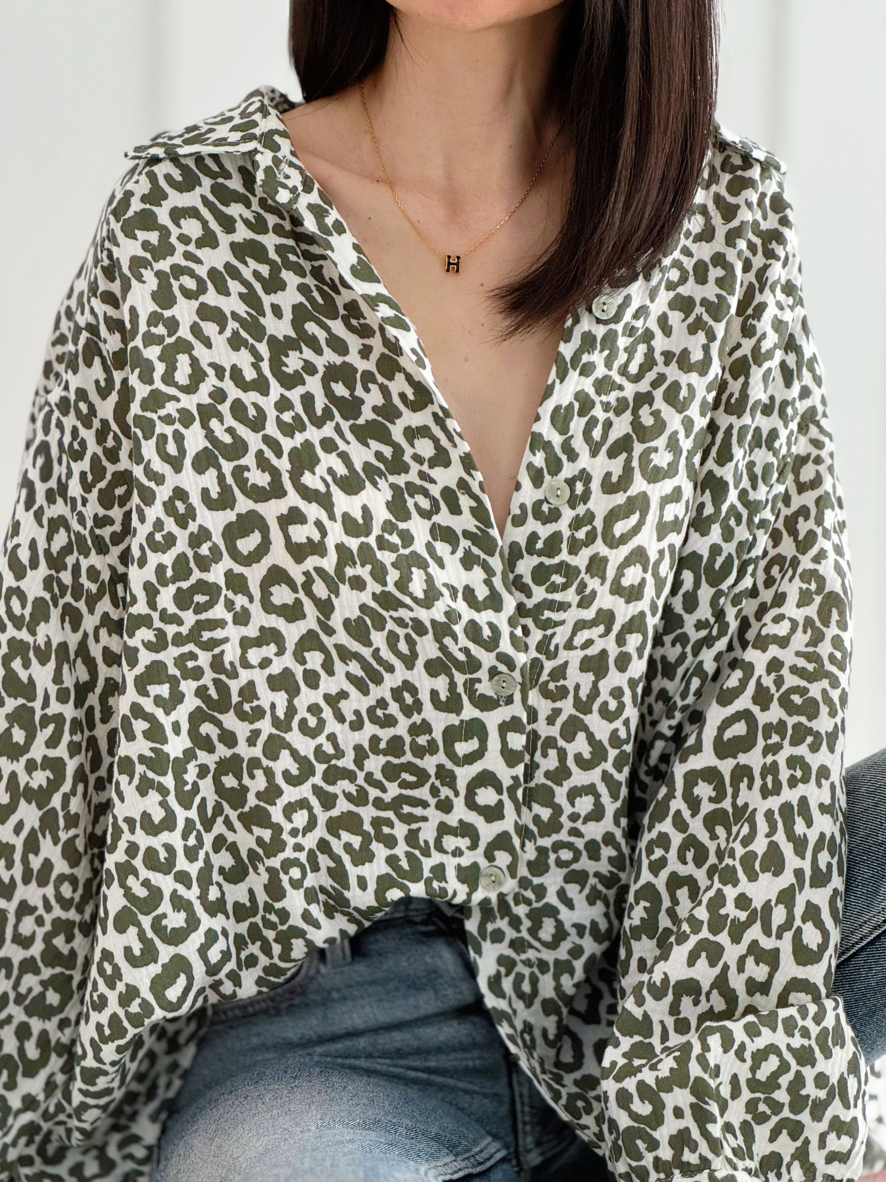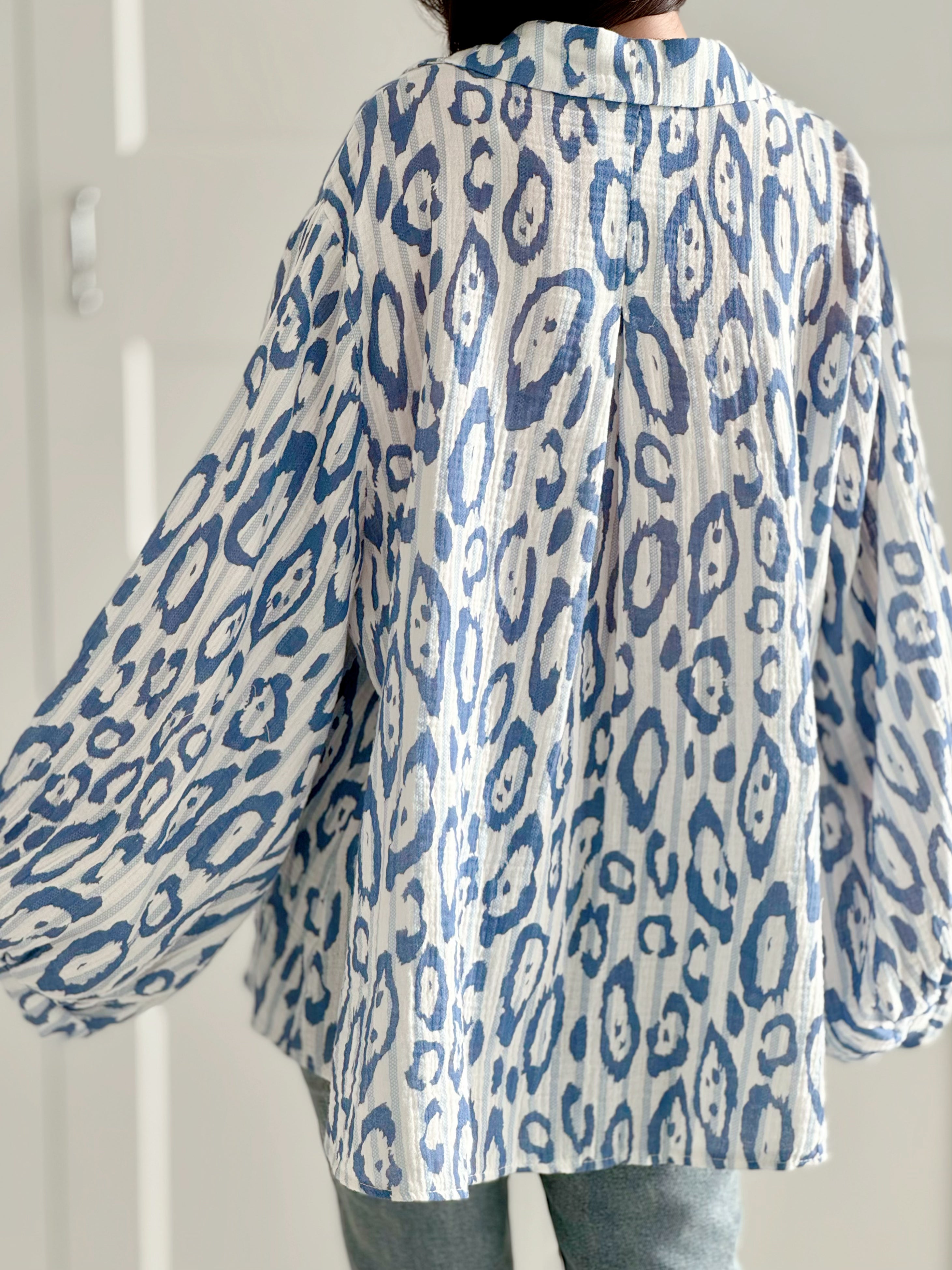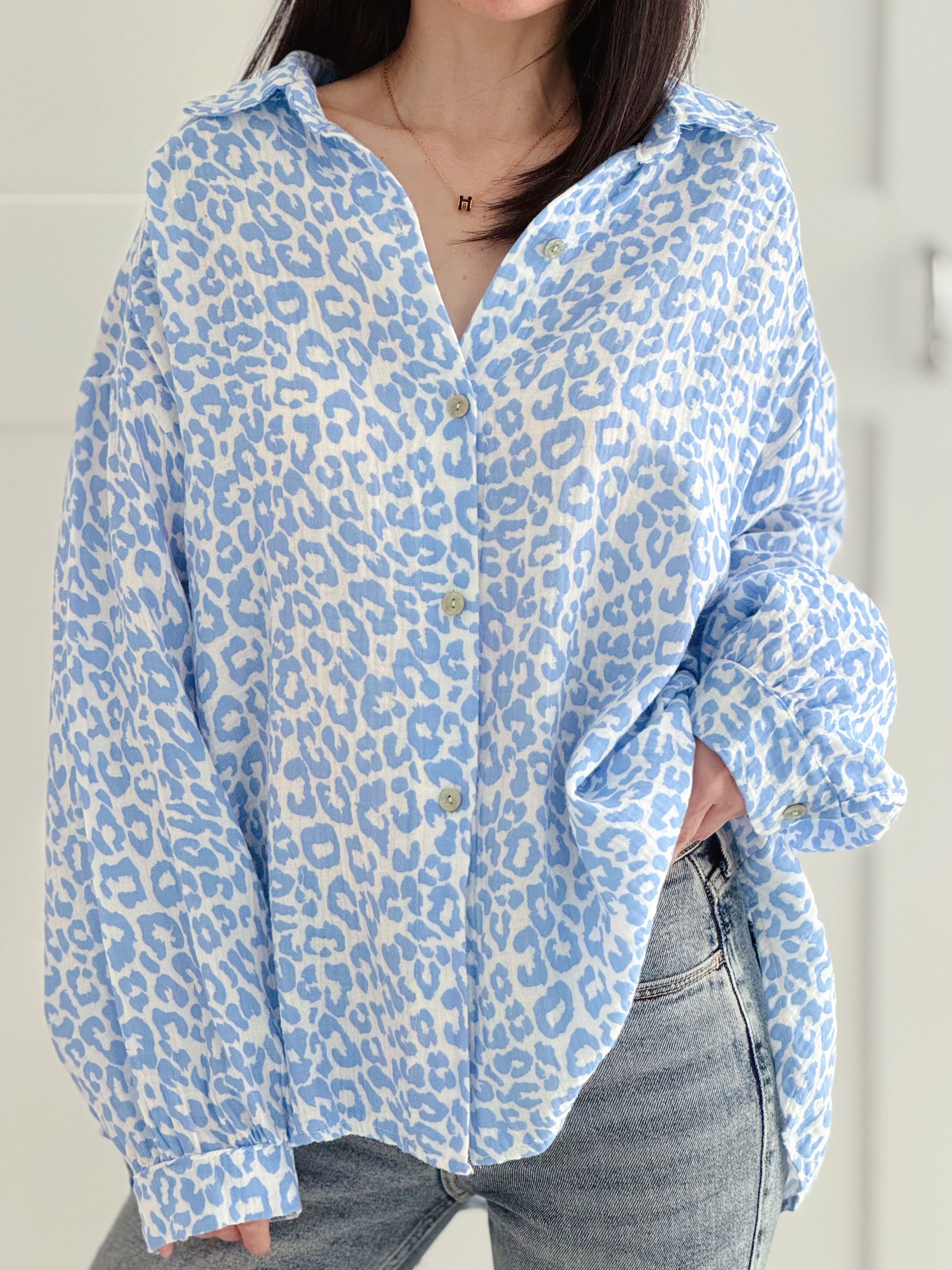 Musselin Bluse, bunte Leo, 4 Farben