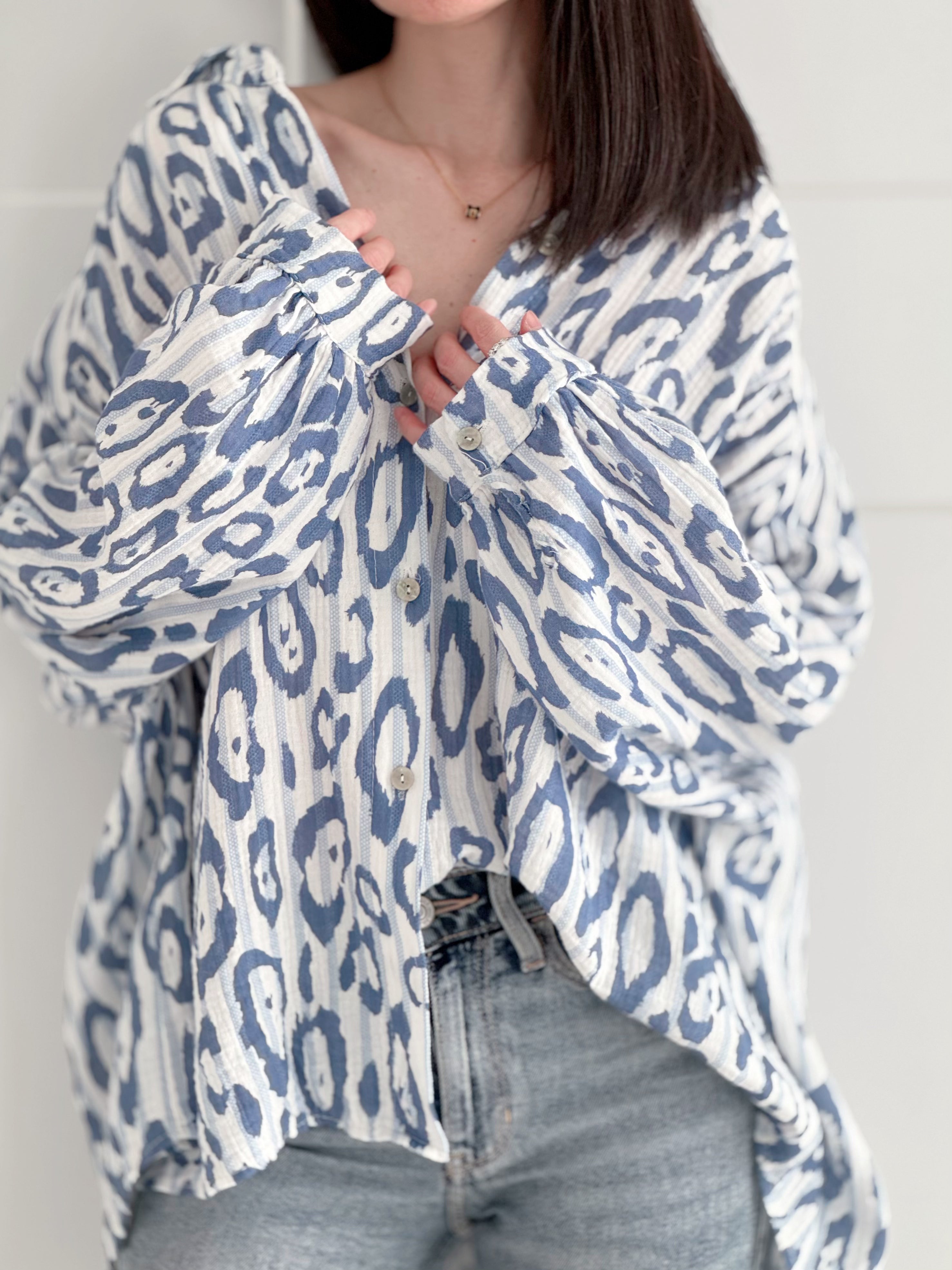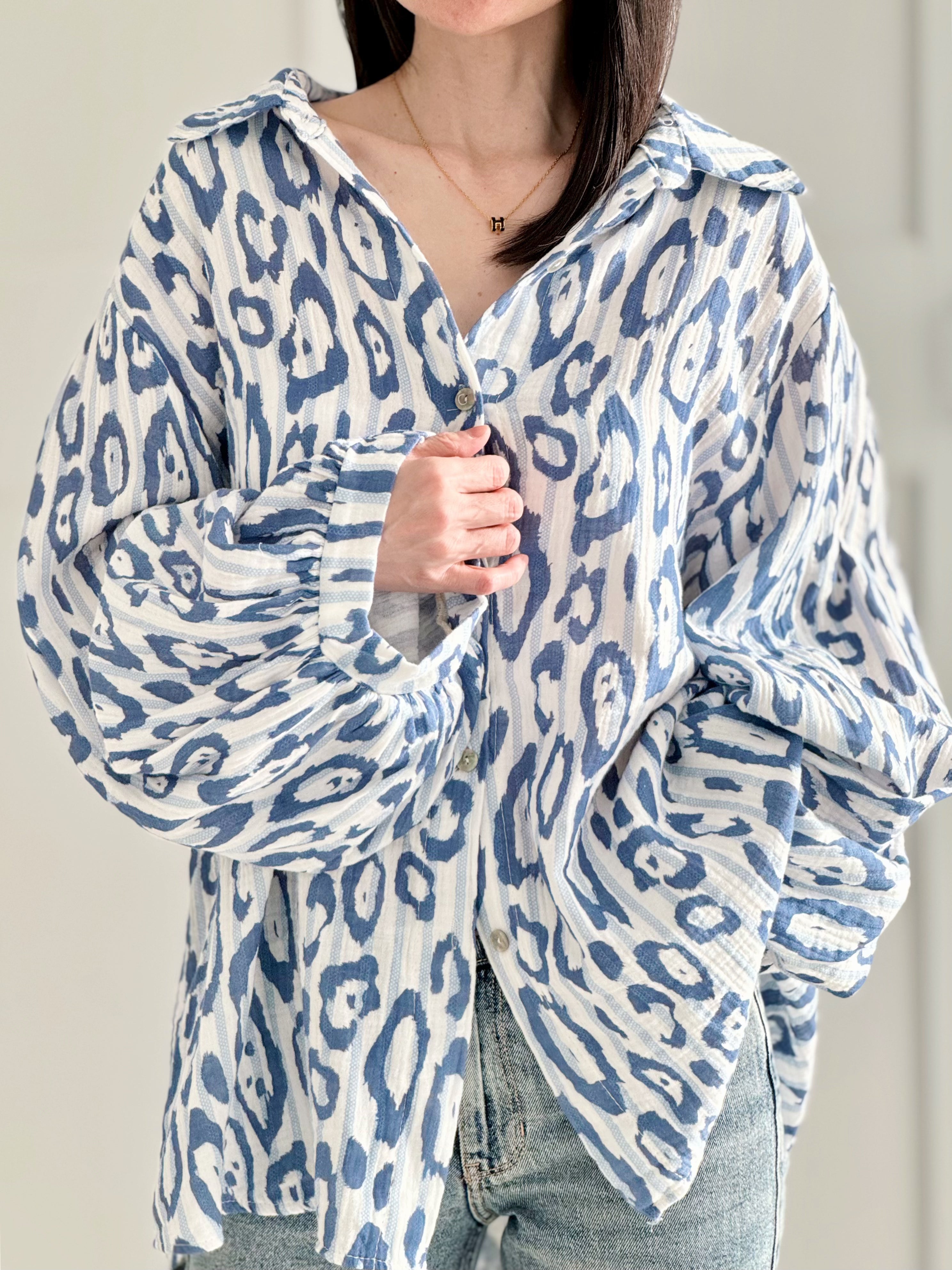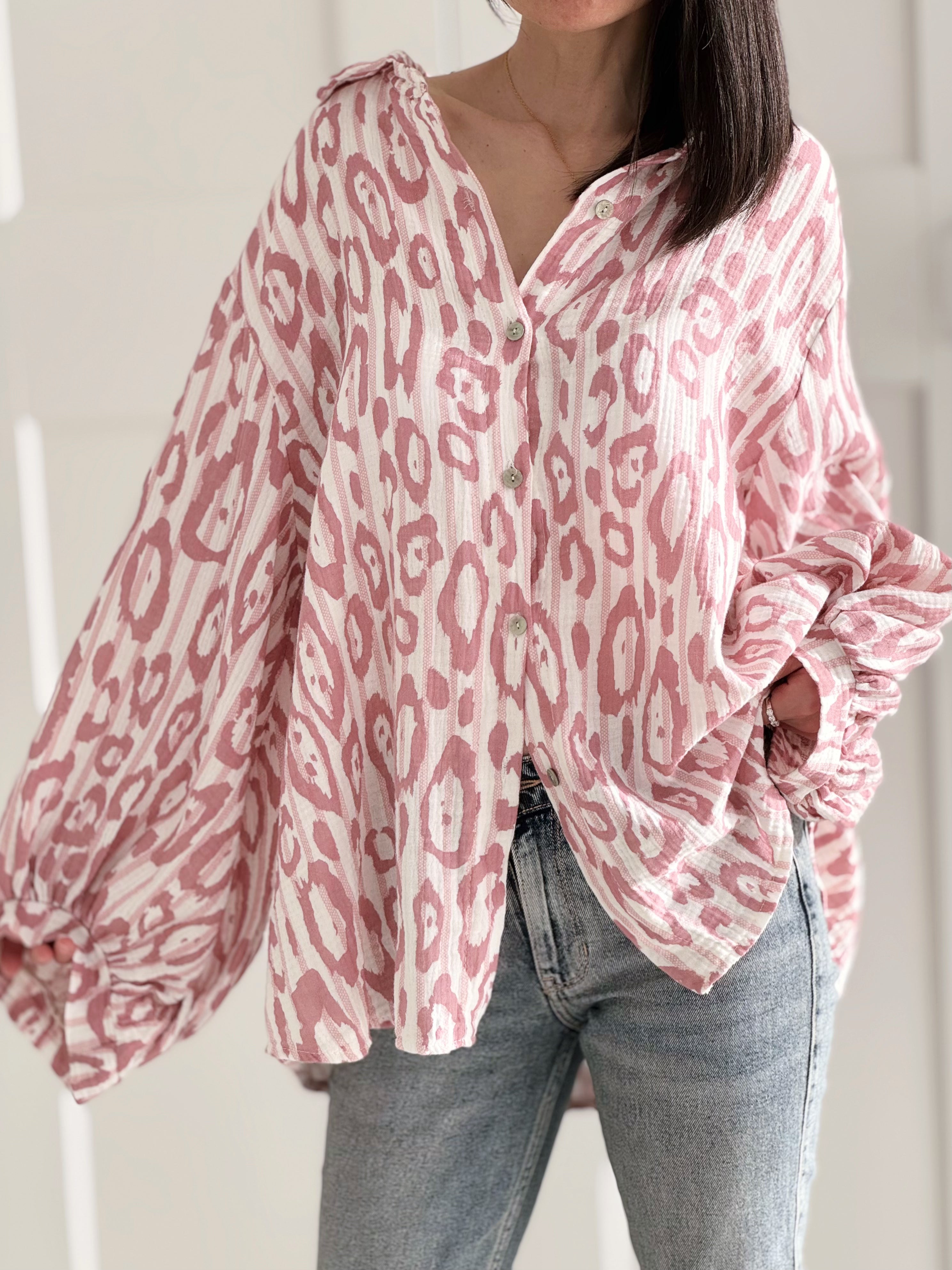 Musselin Bluse, bunte Leo, 4 Farben