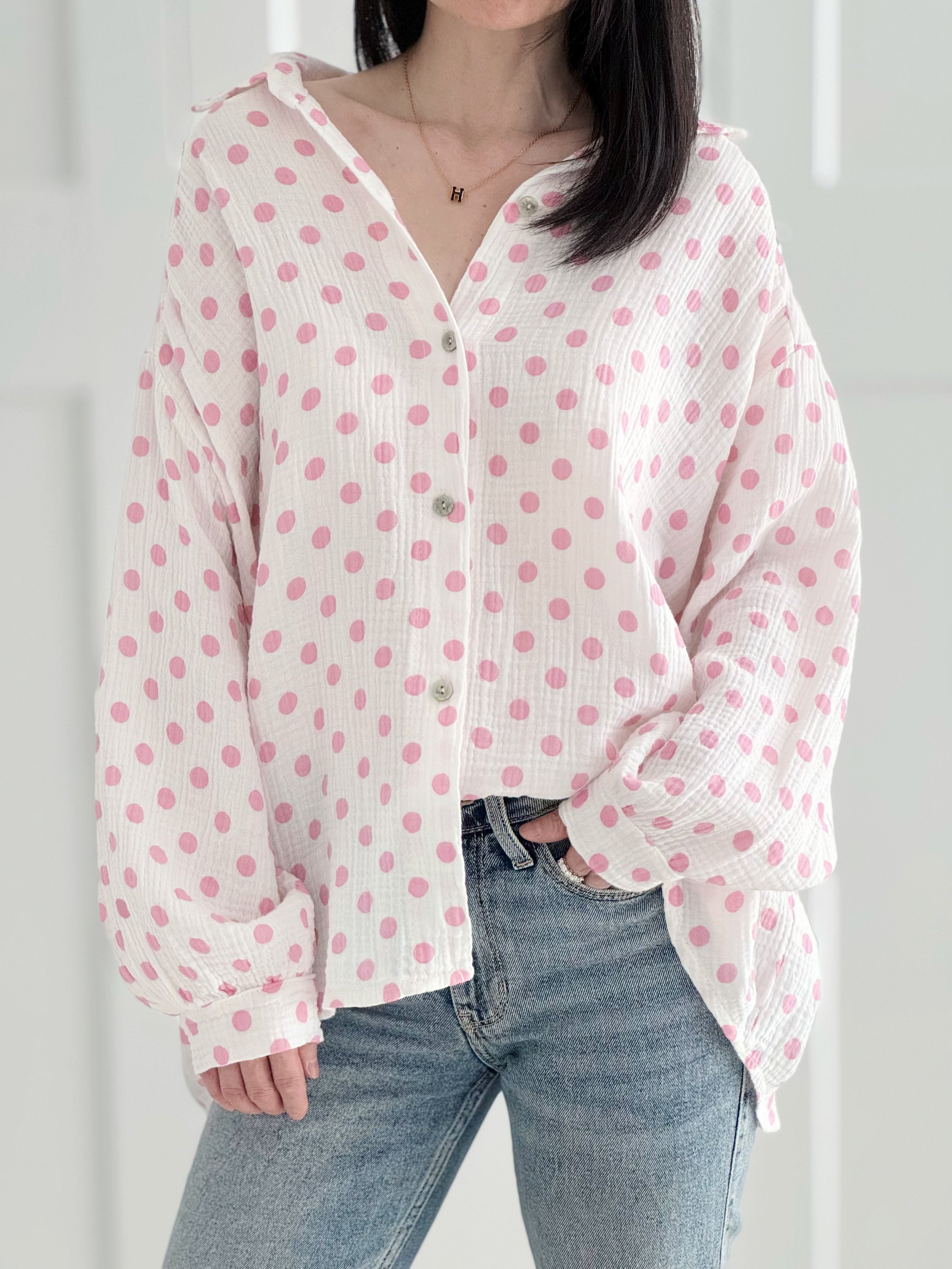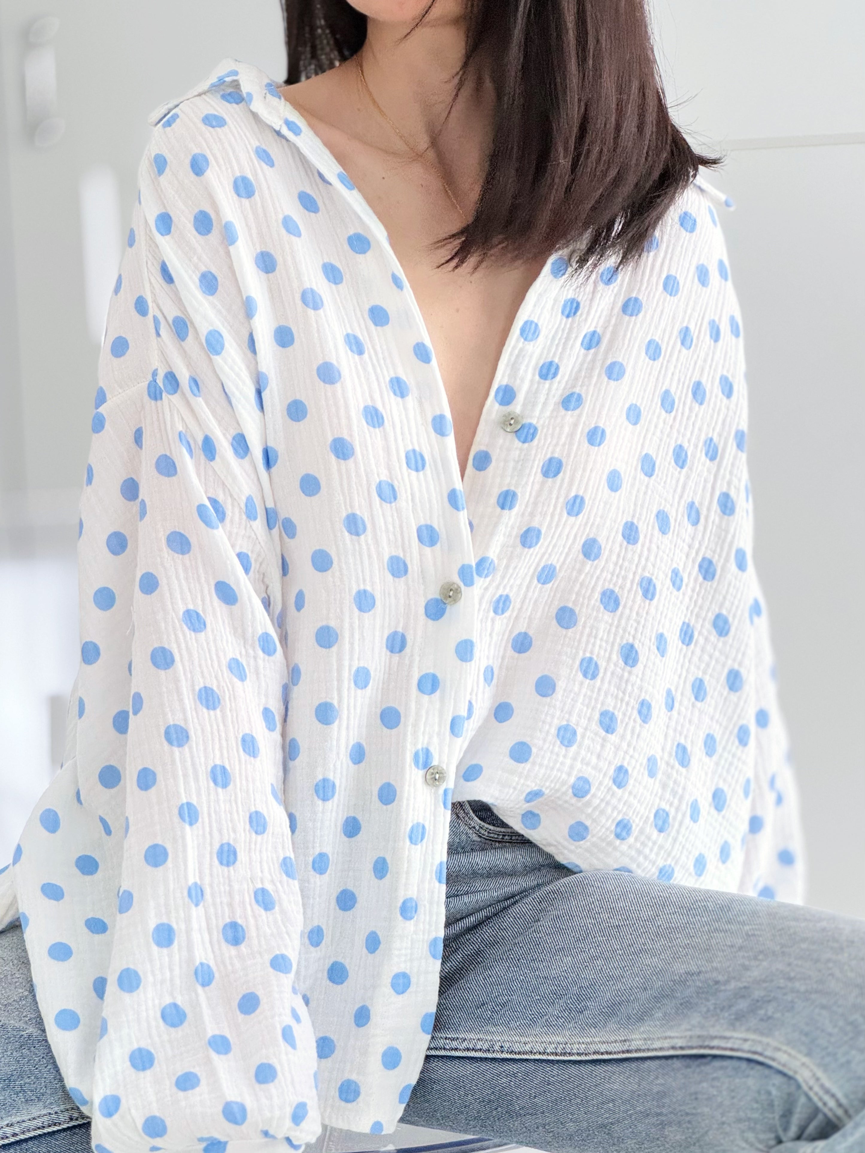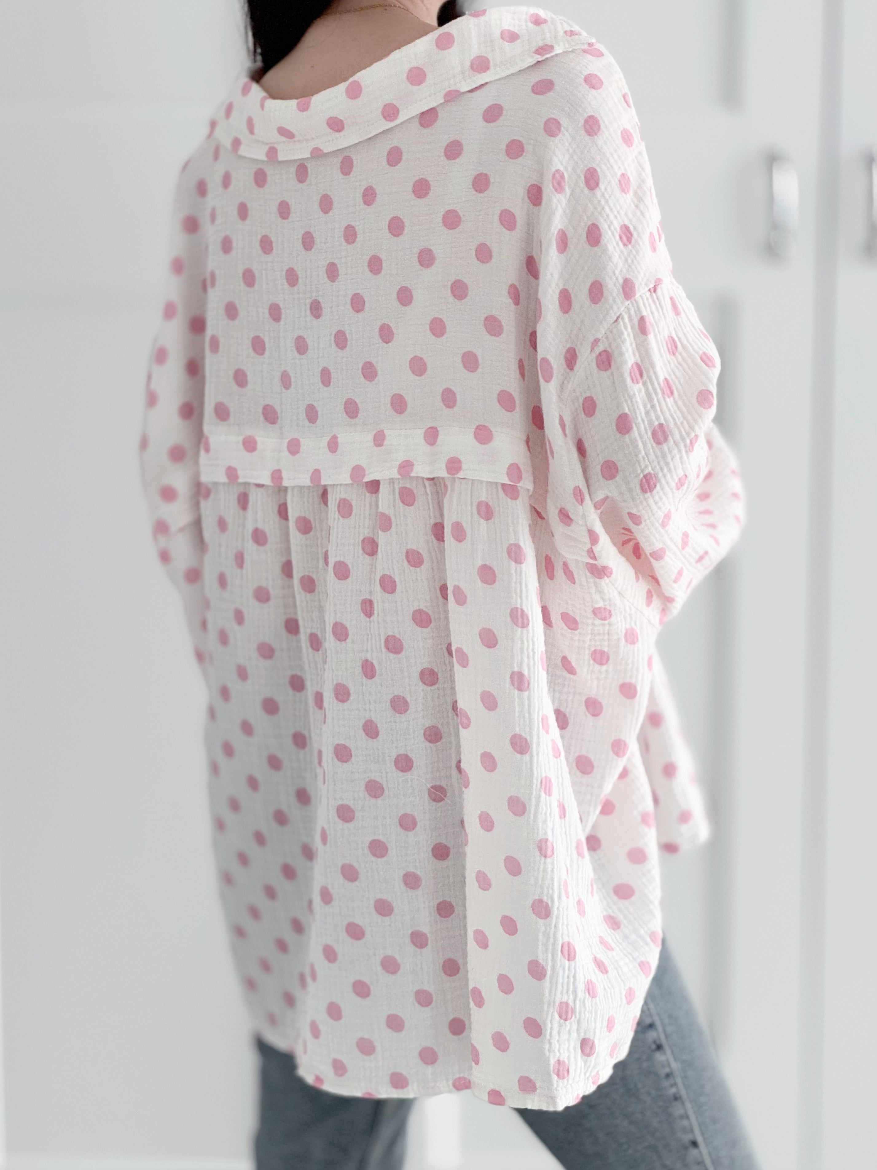 Musselin Bluse, Polka Dots, 6 Farben