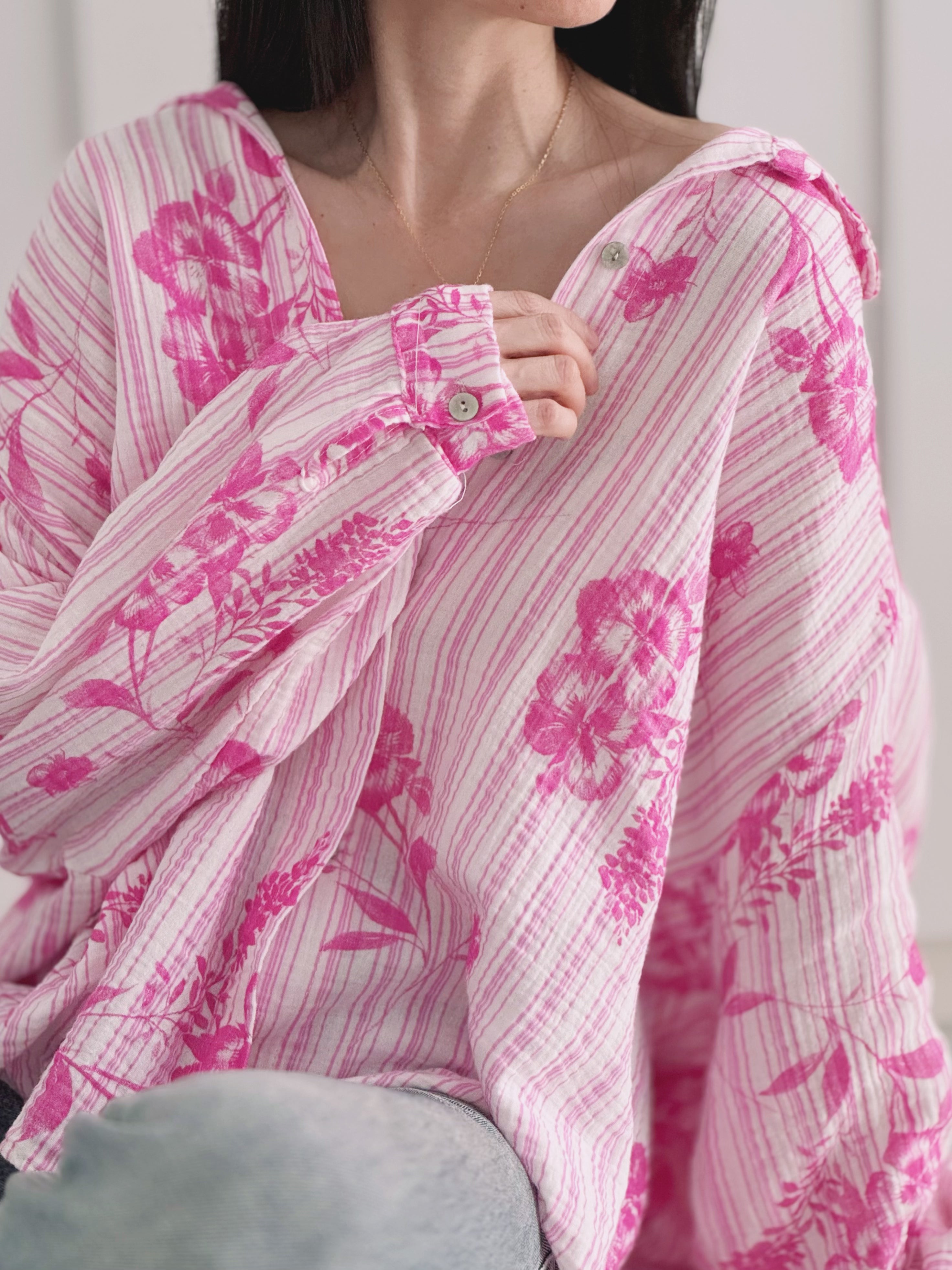 Musselin Bluse, long oversize, 30+ Farben