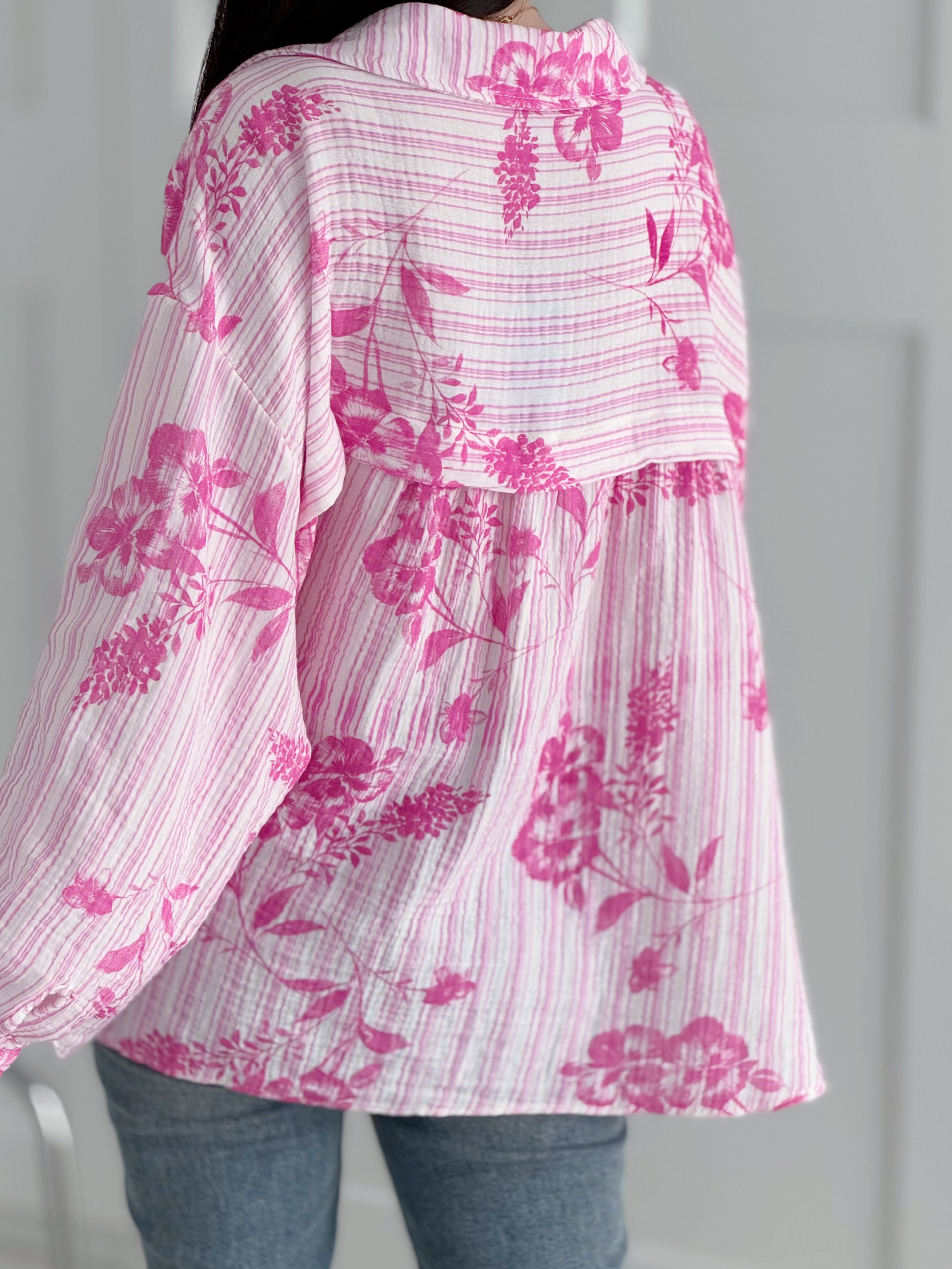 Musselin Bluse, Blumen & Streifen, 6 Farben