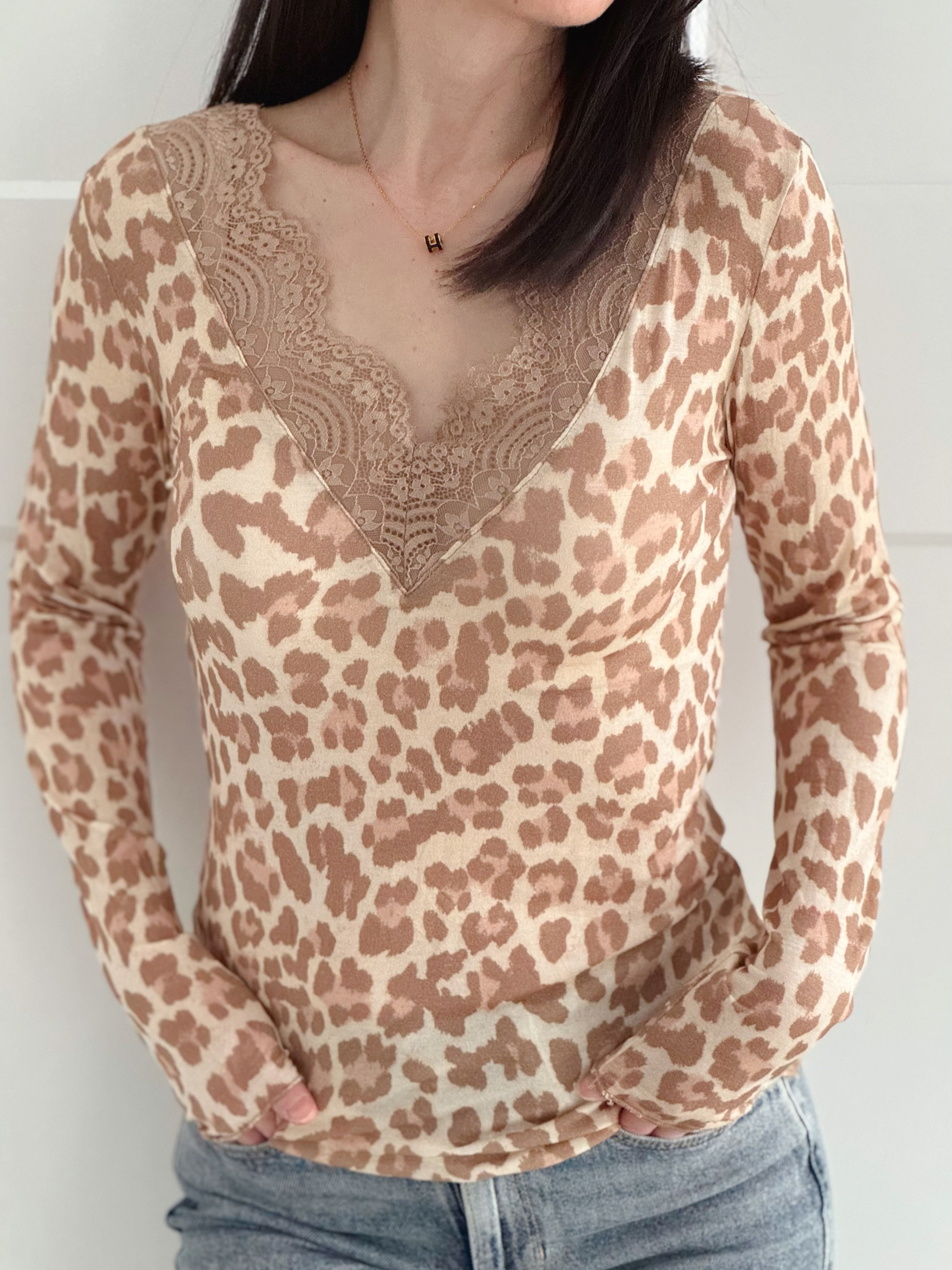 Longsleeve, Cashmere, Lace, bunte-Leo, 4 Farben