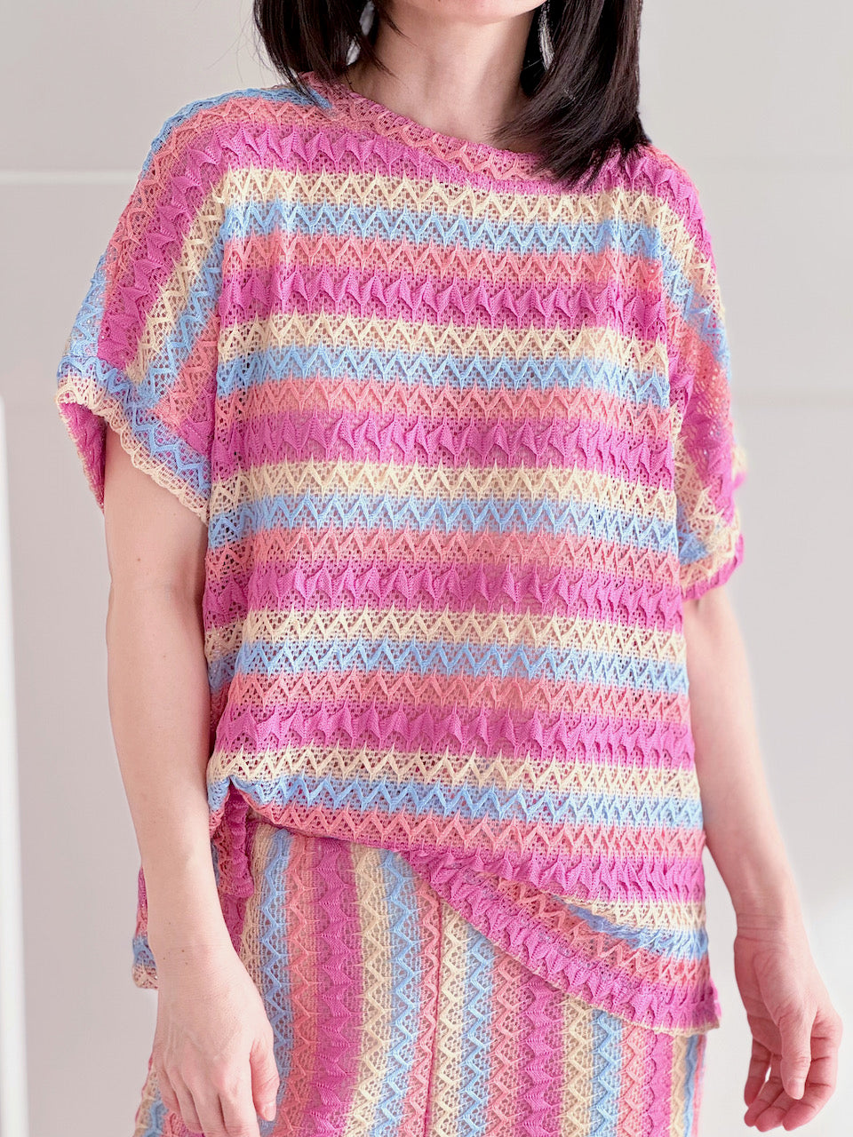 Kurzarm-Sweatshirt, Blockstreifen, 5 Farben