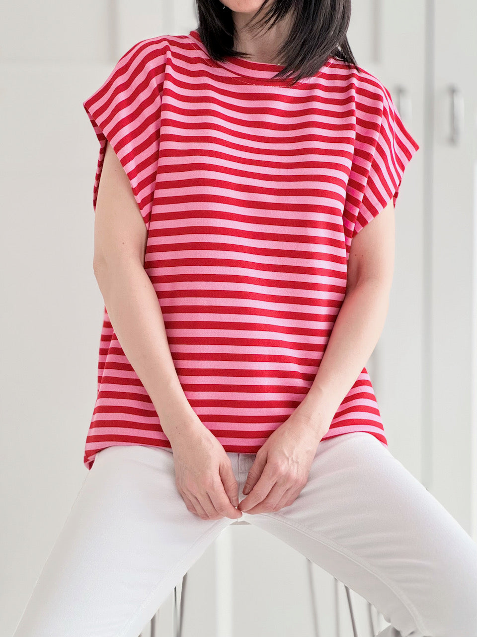 T-Shirt, Cap-Sleeves, Streifen, 4 Farben
