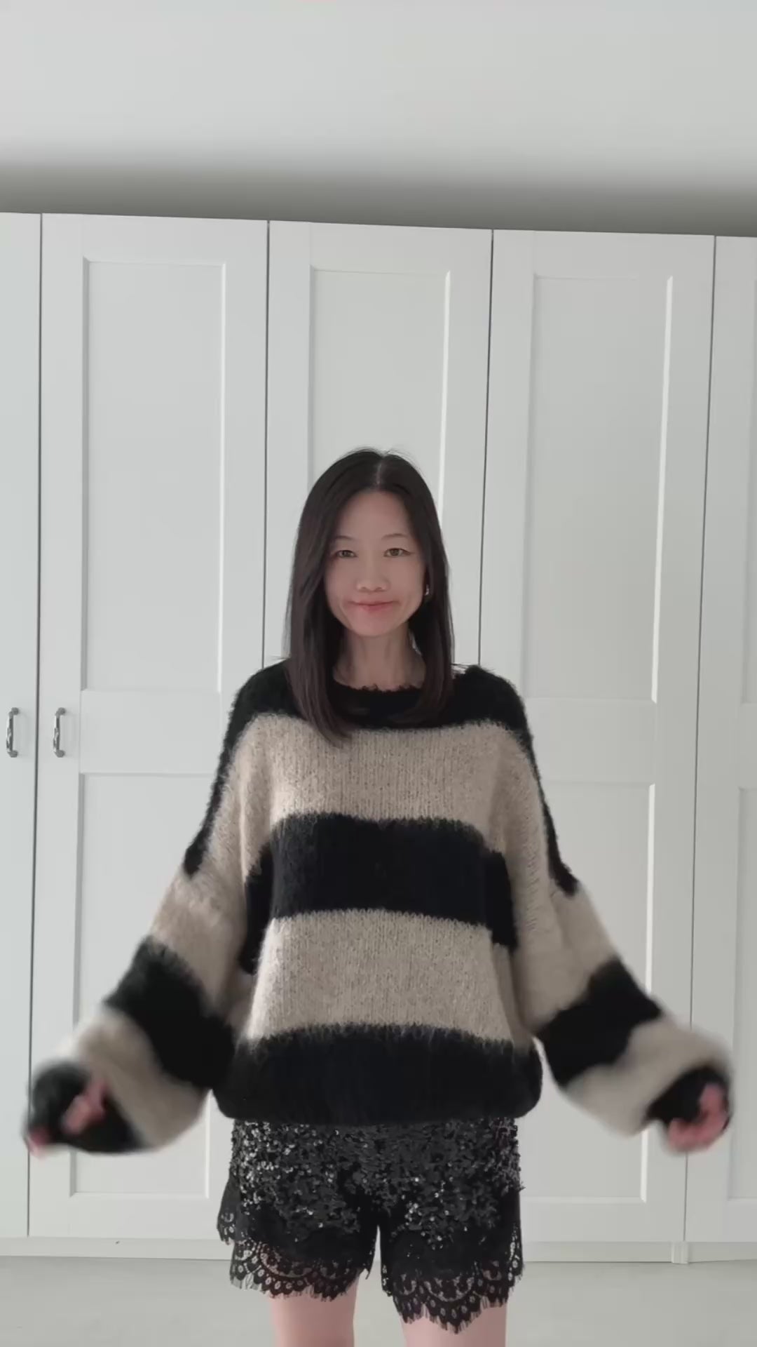 Oversize-Strickjacke, Blockstreifen, Flauschi