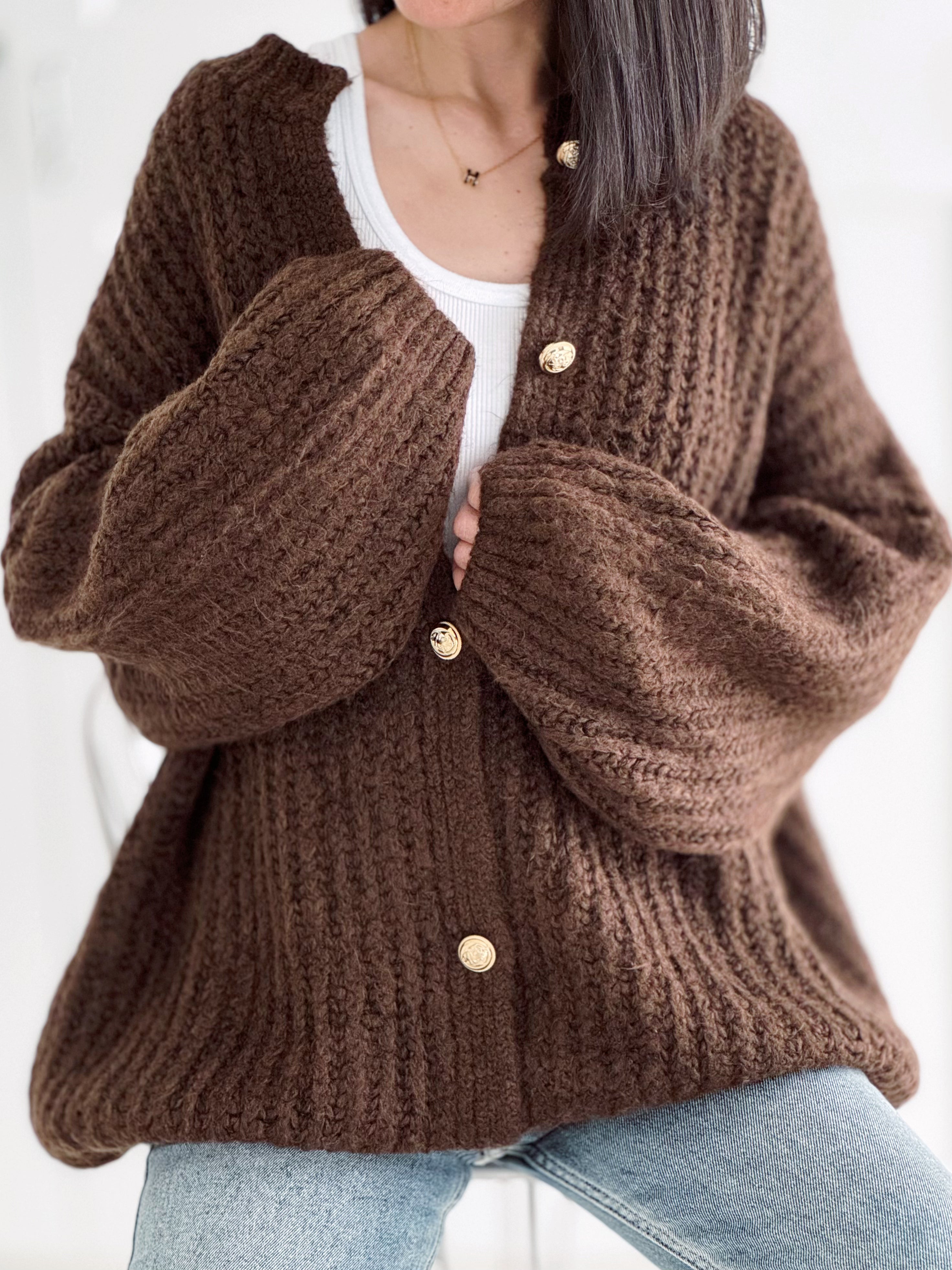 Strickjacke, flauschi, classic, Schoko
