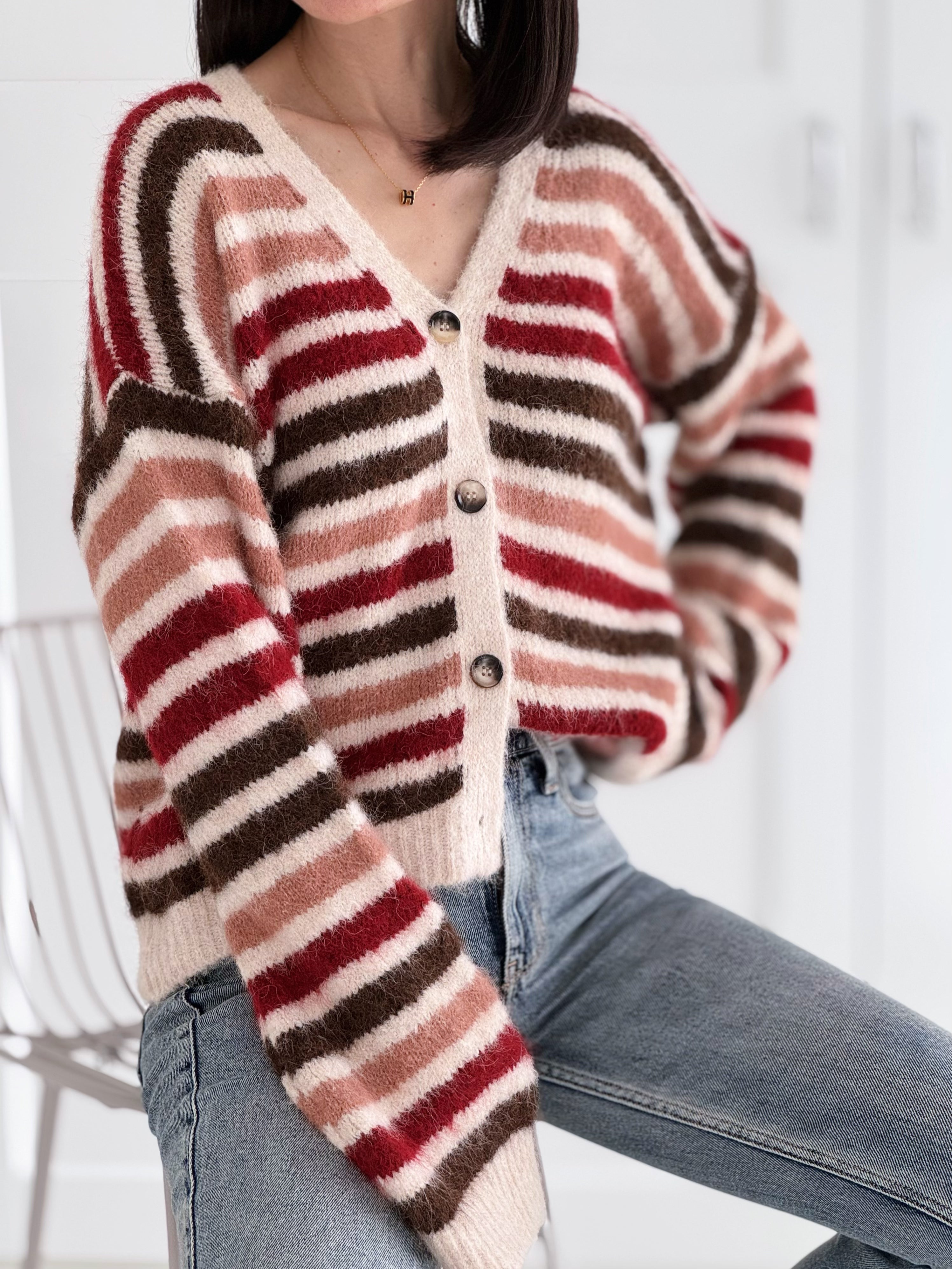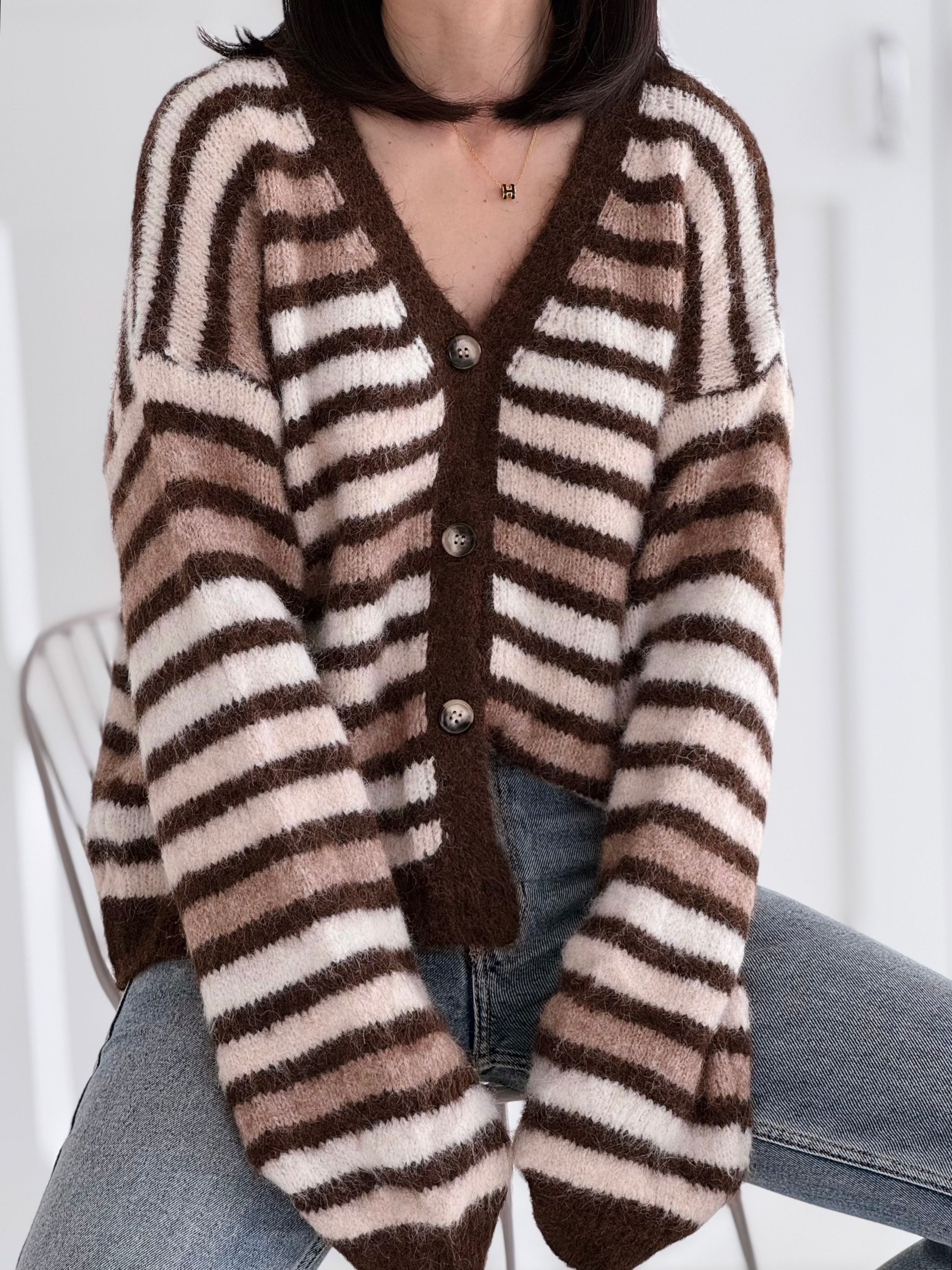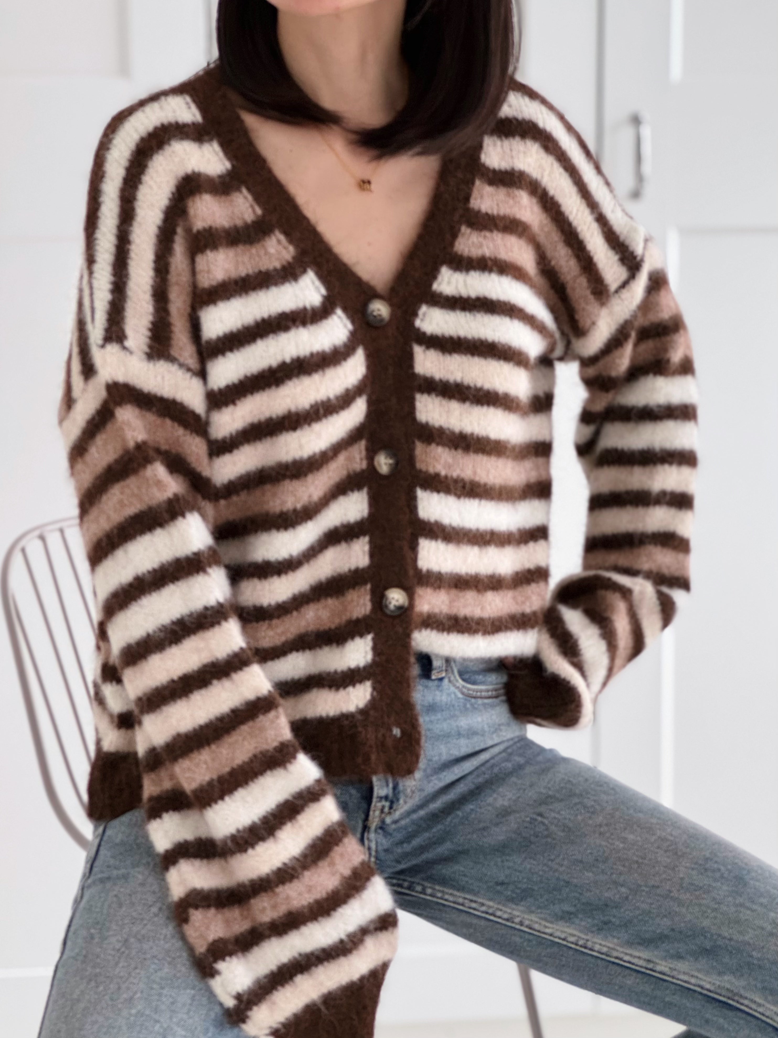 Strickjacke, Chic Stripe, Flauschi, 3 Farben