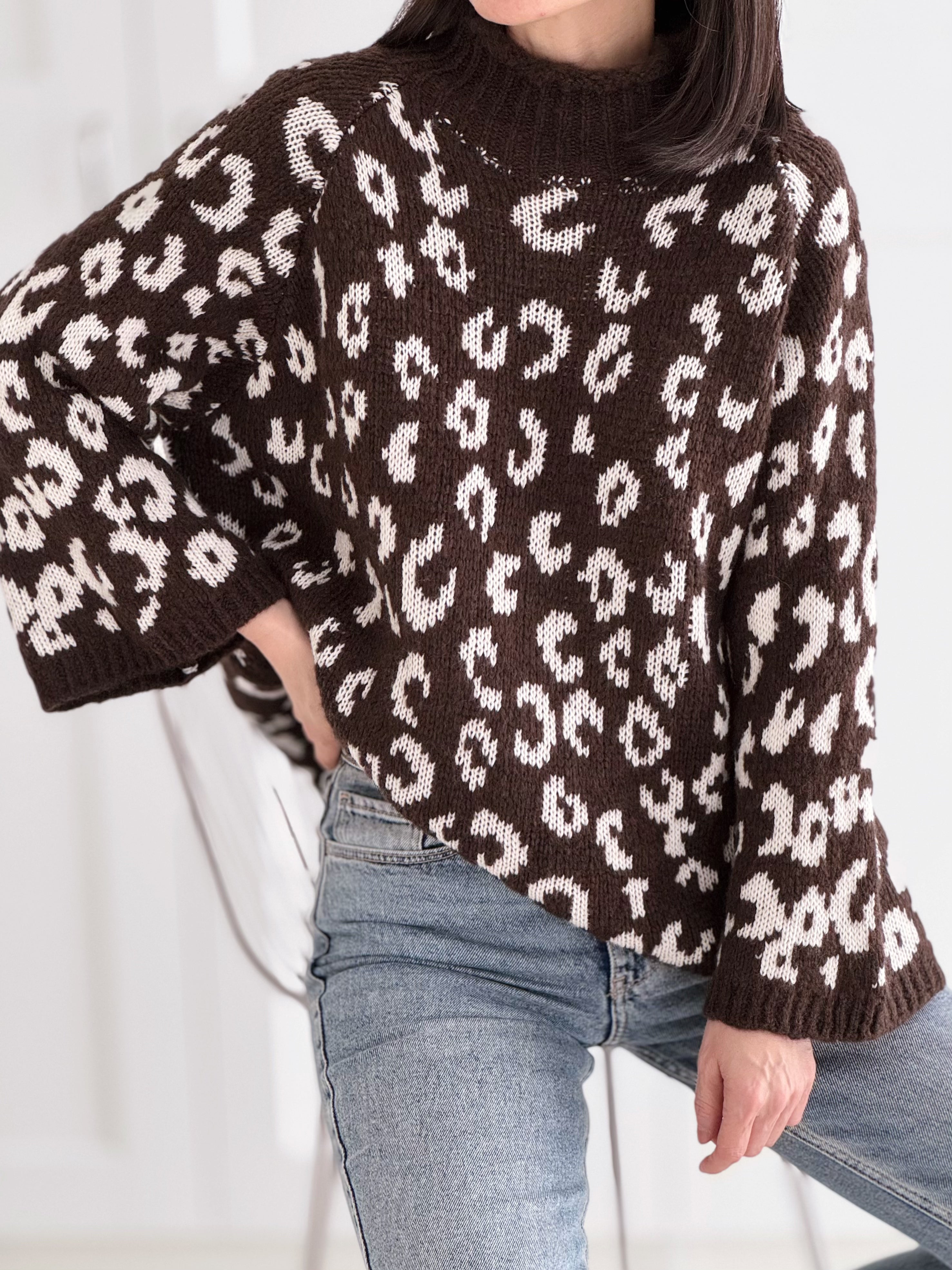 Pullover, flauschi, Stehkragen, Schoko