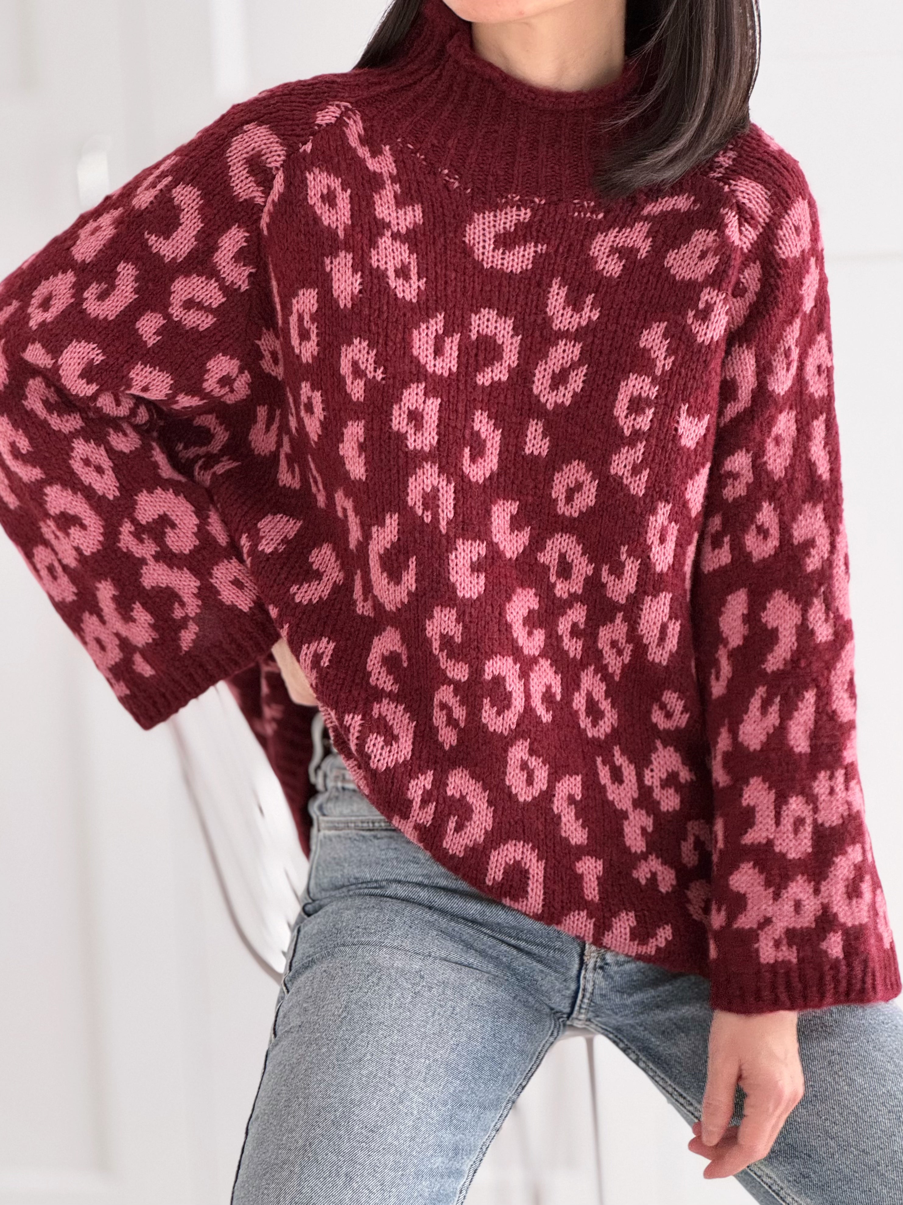 Pullover, flauschi, Stehkragen, Beere