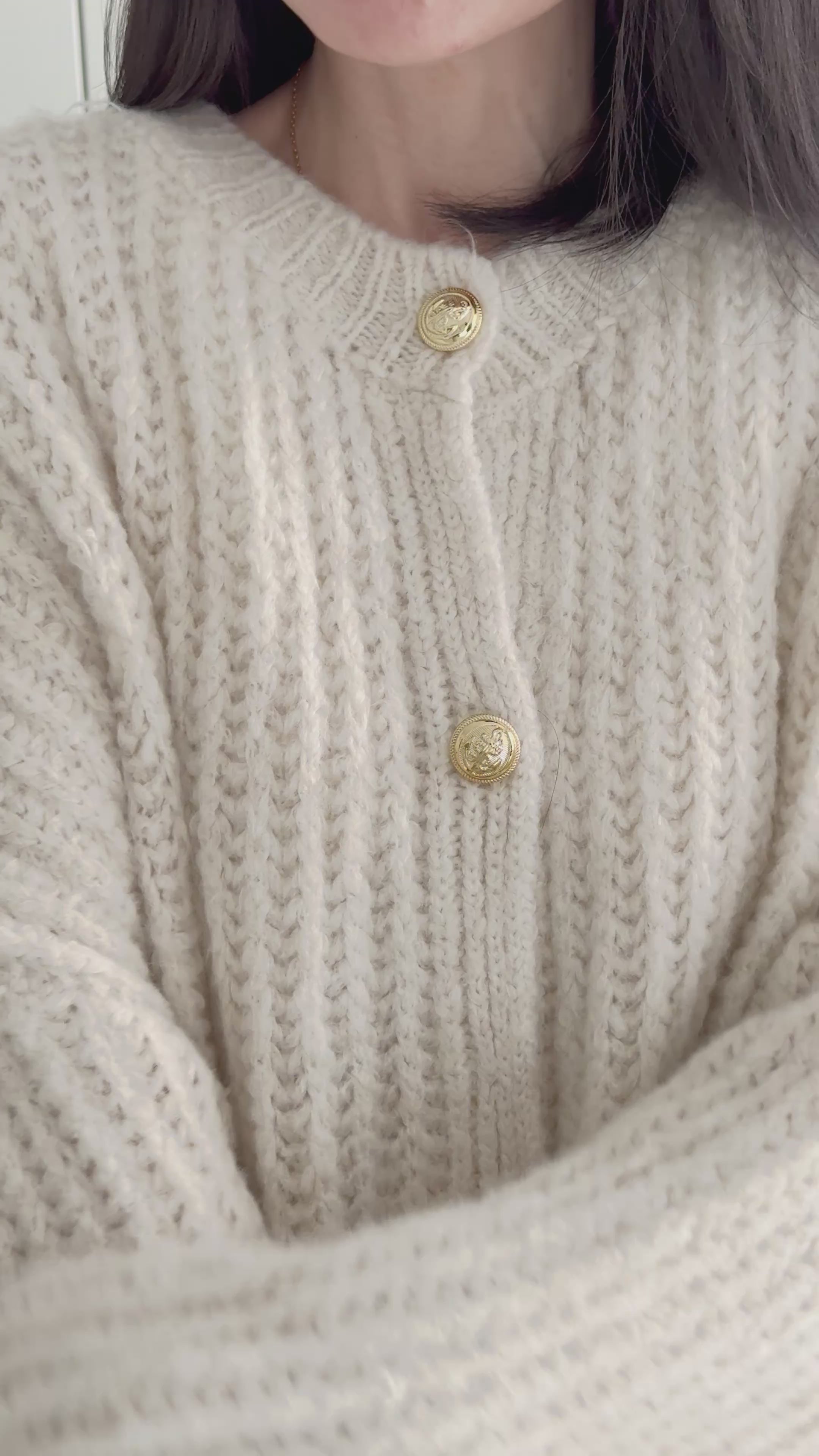 lange Strickjacke, Goldknöpfe , flauschi, 5 Farben