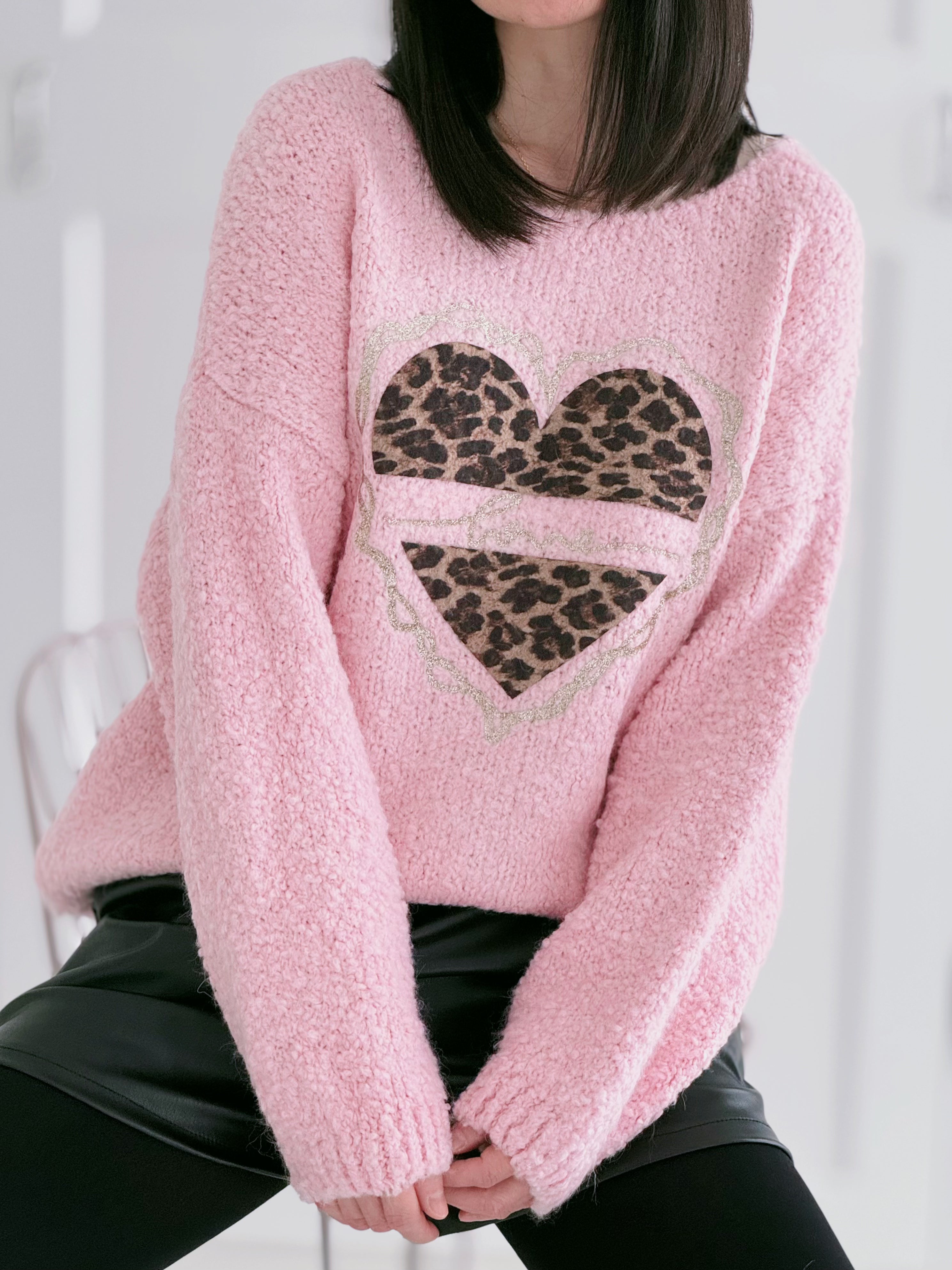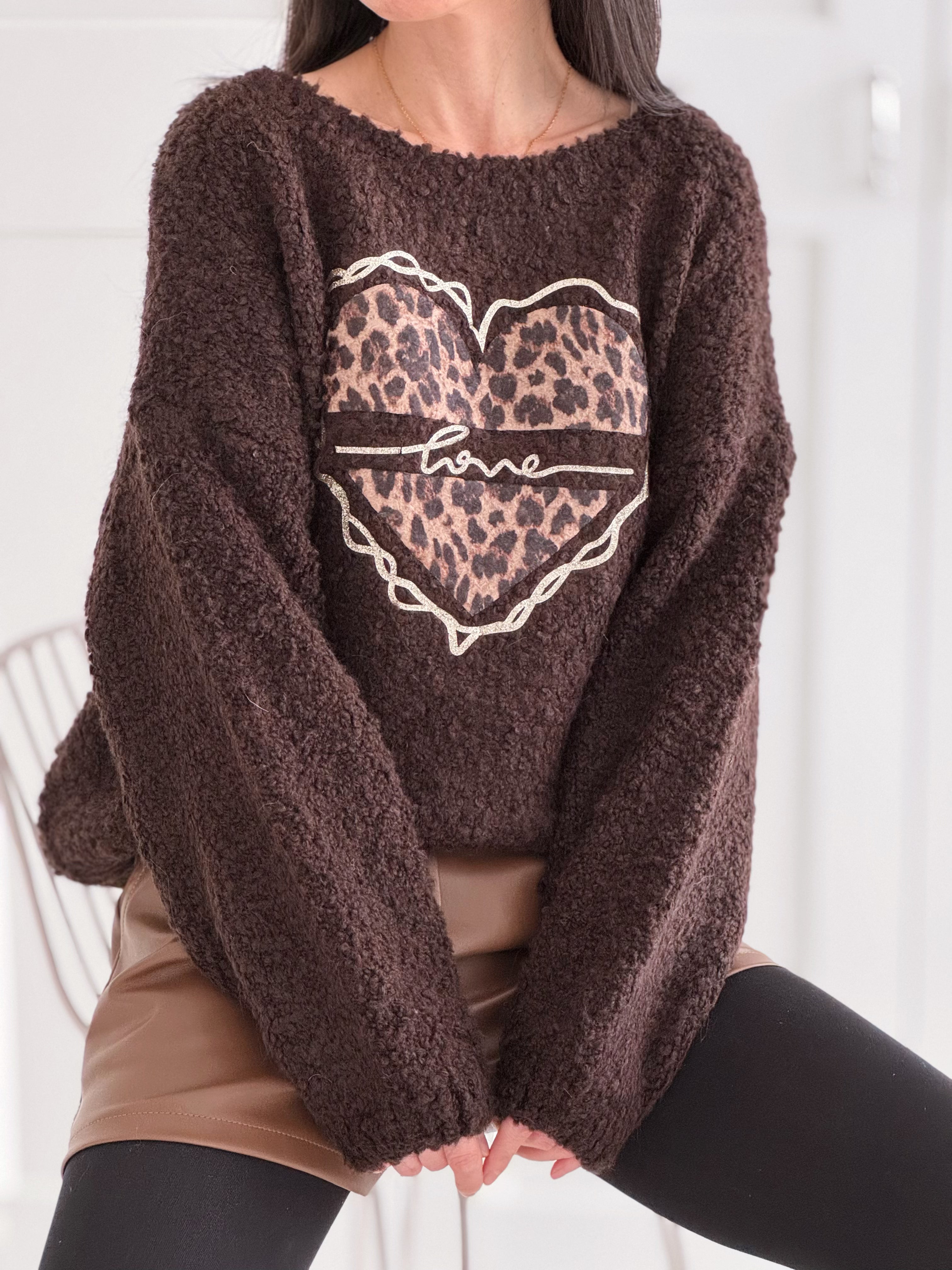 Bouclé Pullover, Leo-Herz, 4 Farben