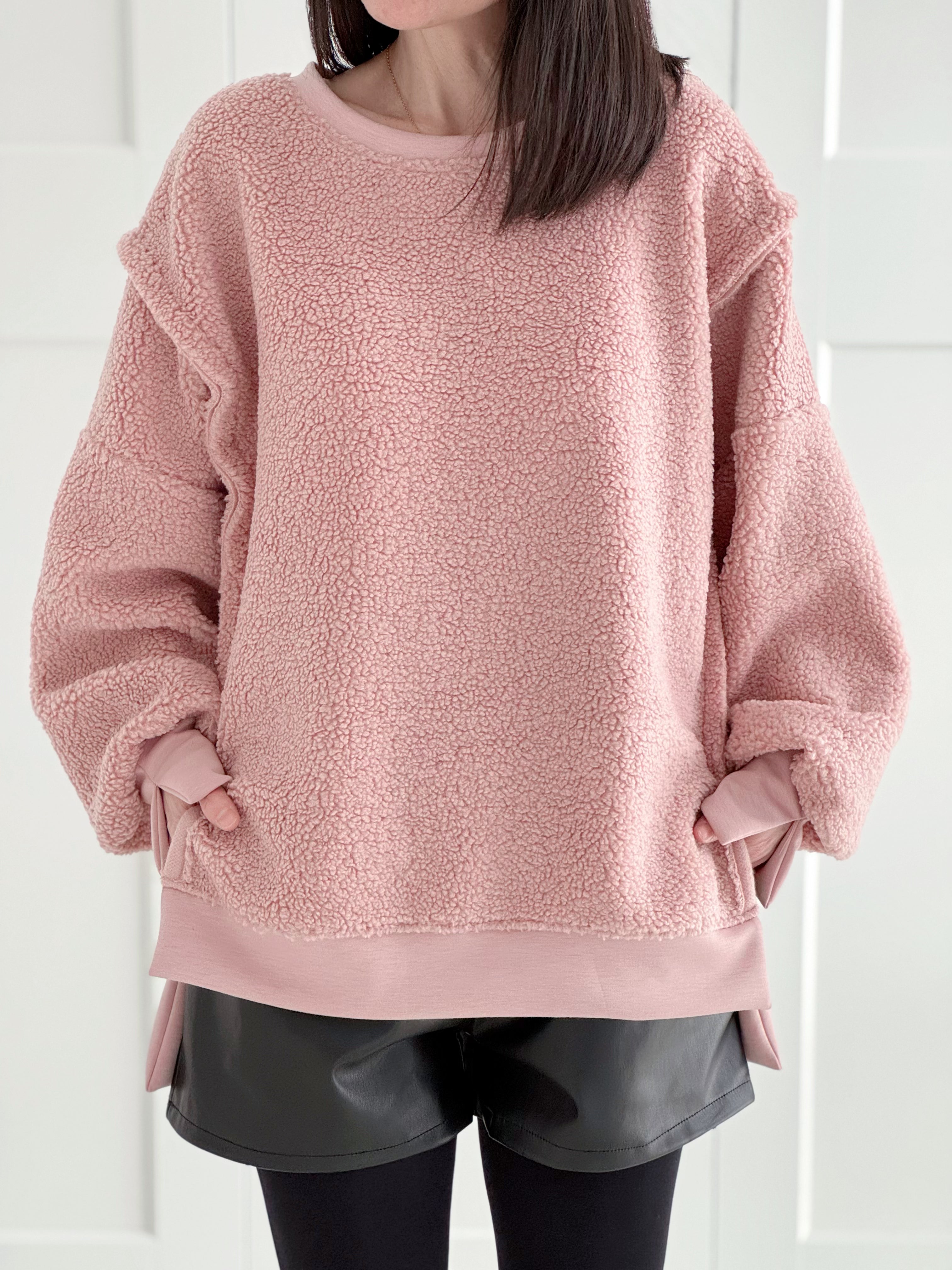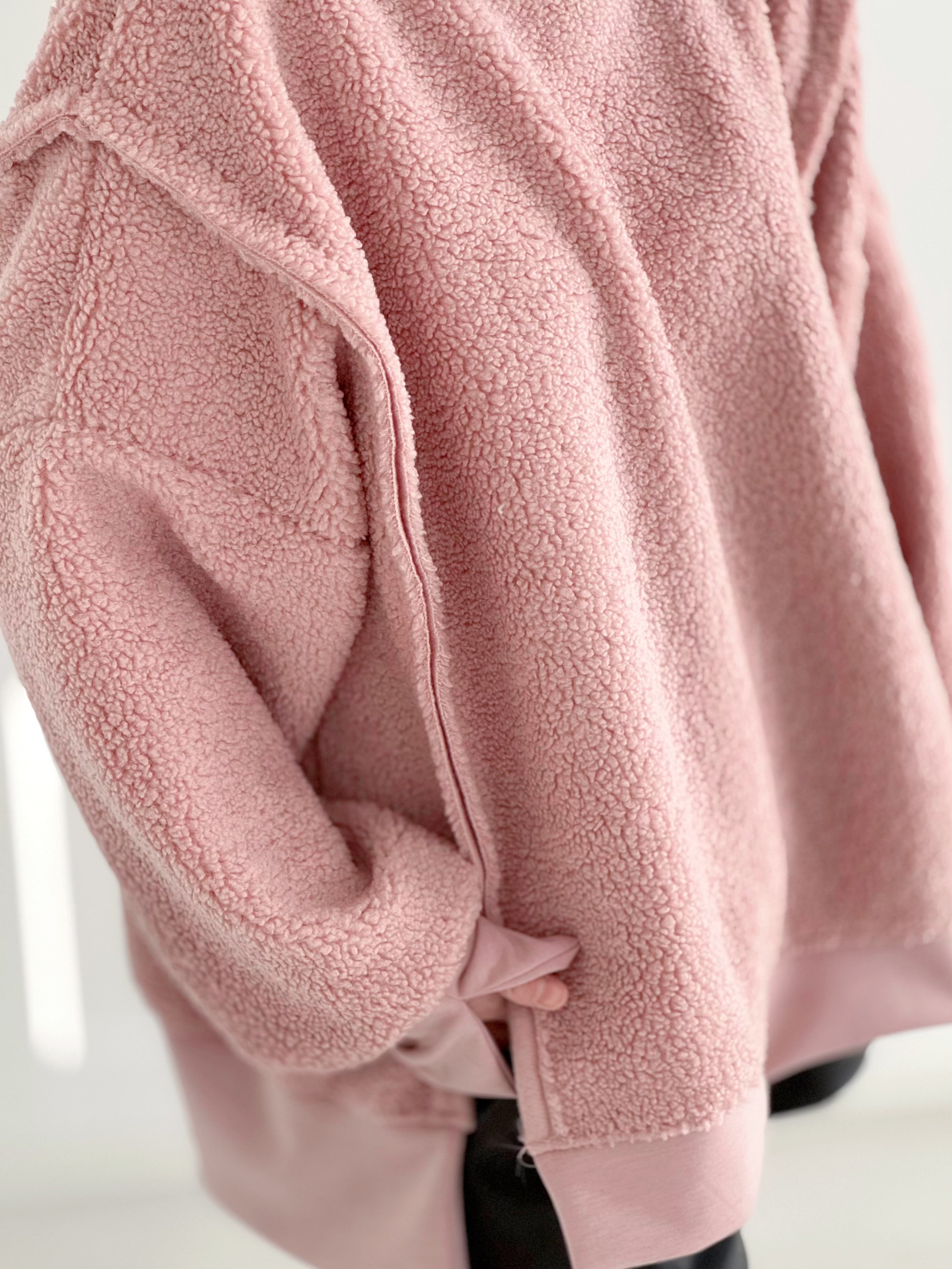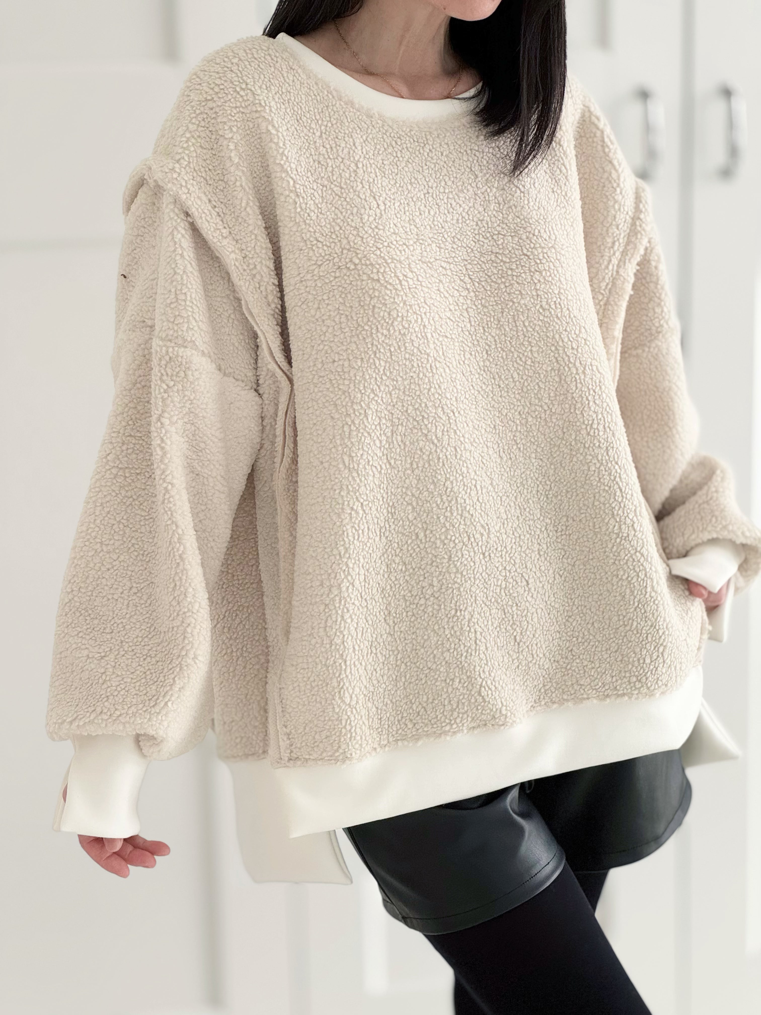 Teddy-Sweatshirt, Oversize, mit Schlitzbund, 4 Farben