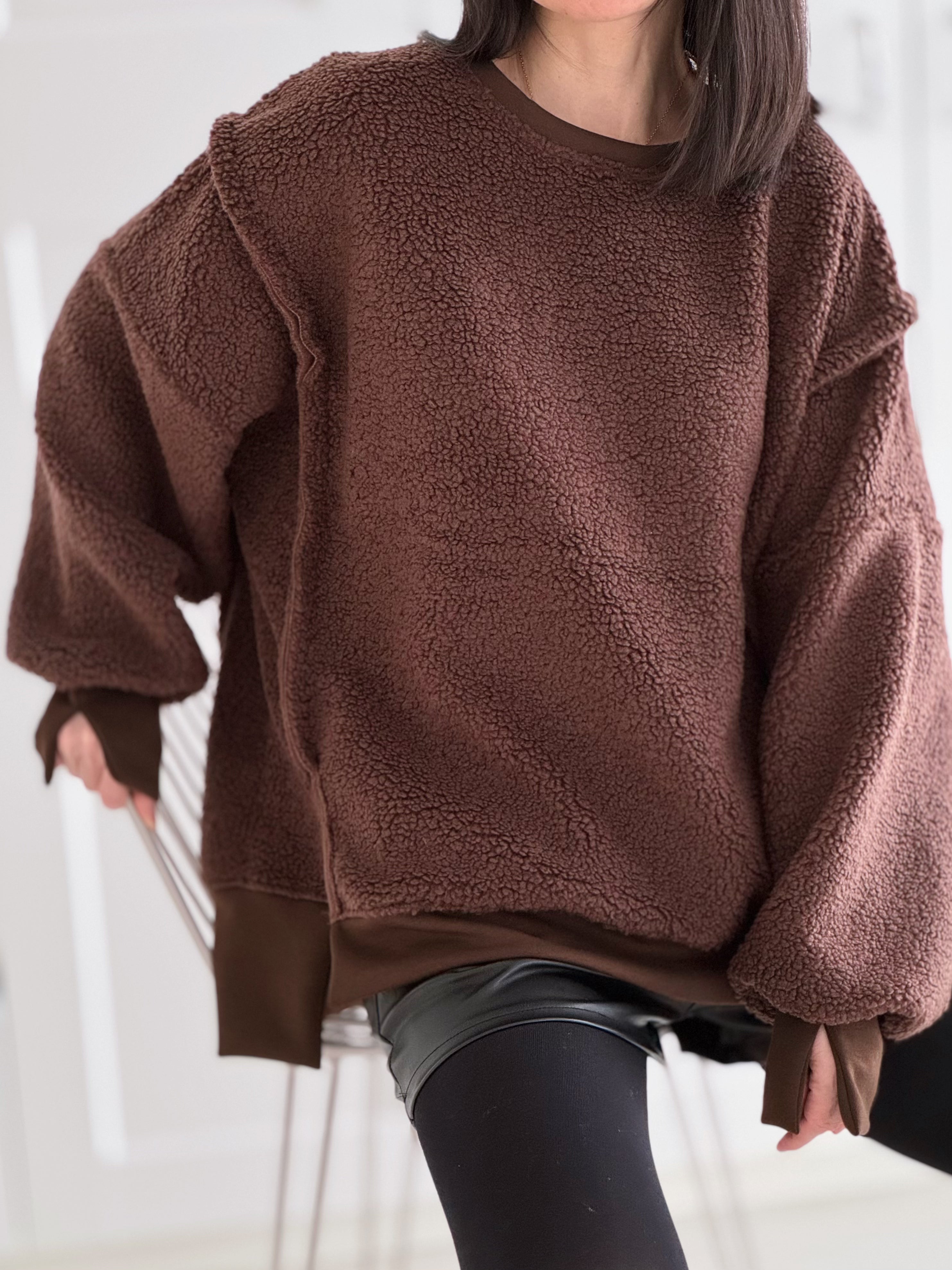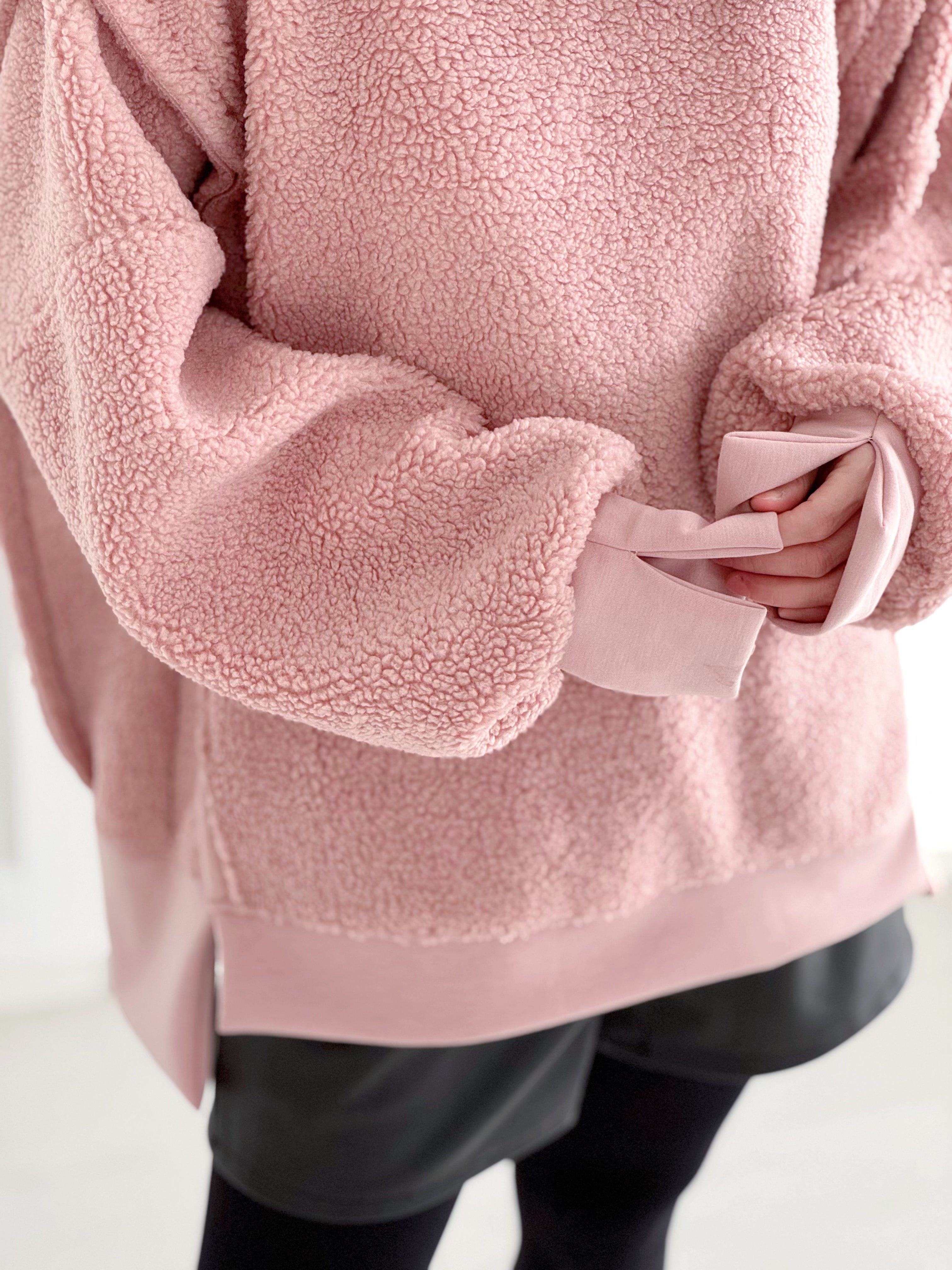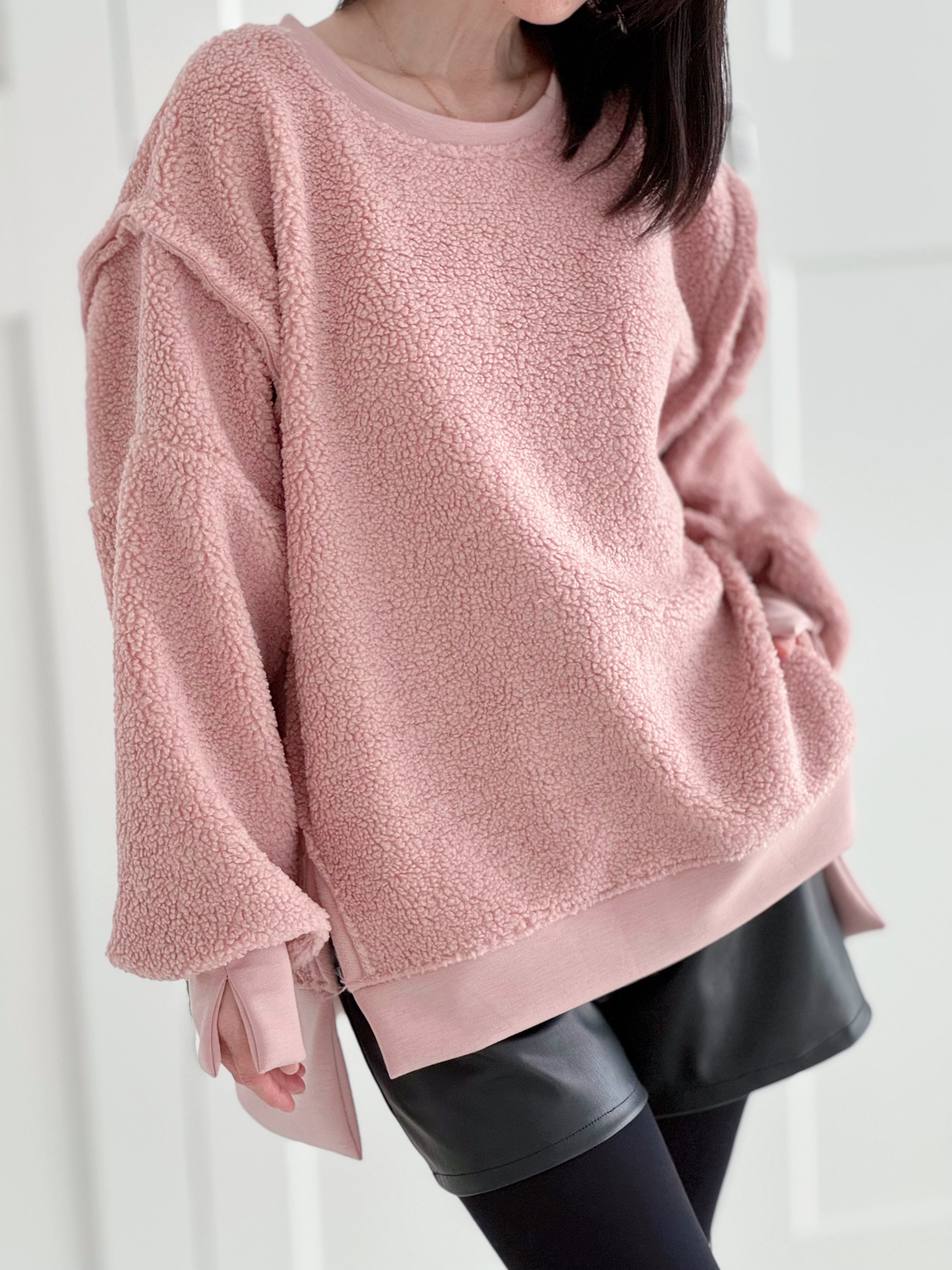 Teddy-Sweatshirt, Oversize, mit Schlitzbund, 4 Farben