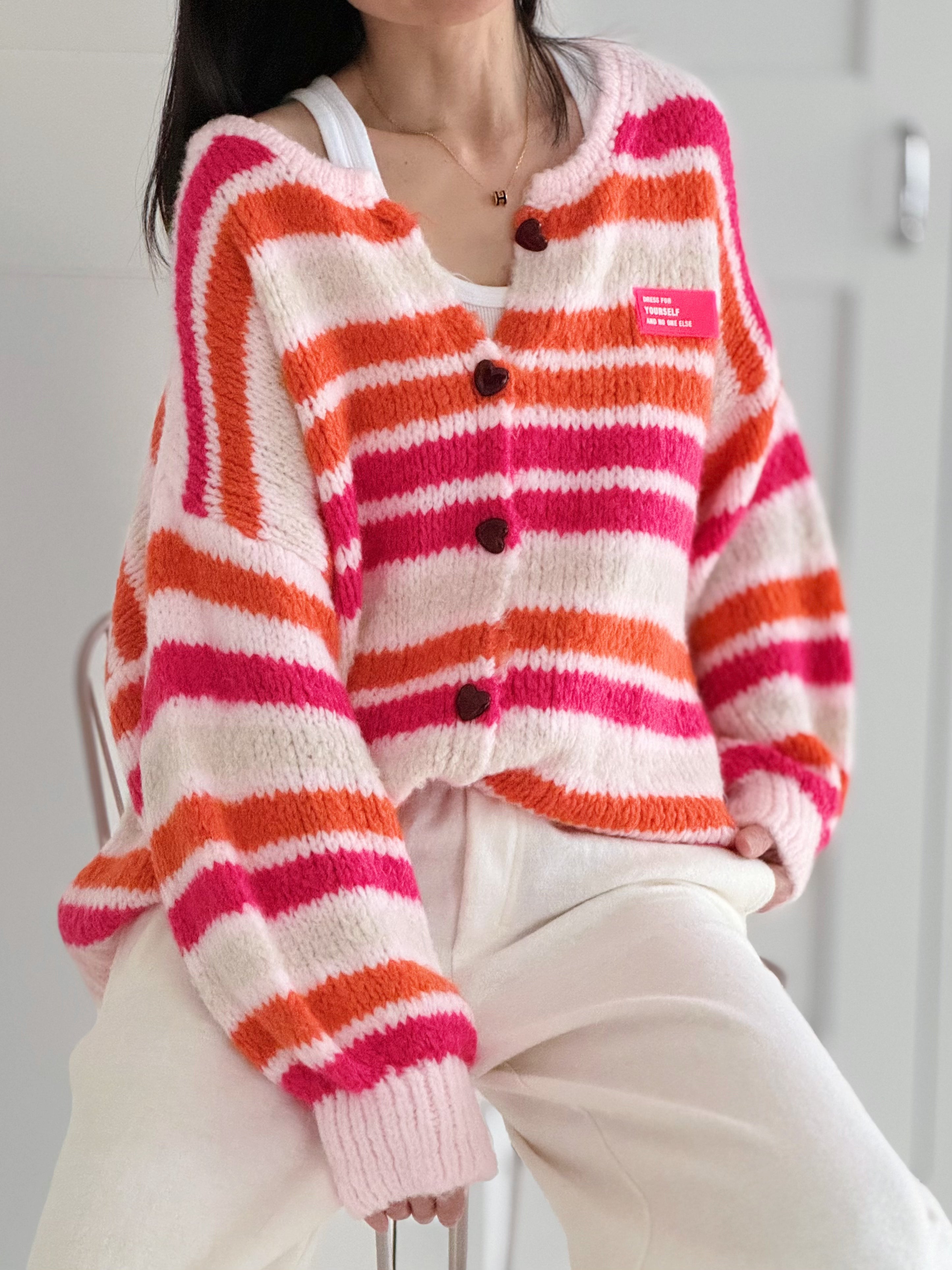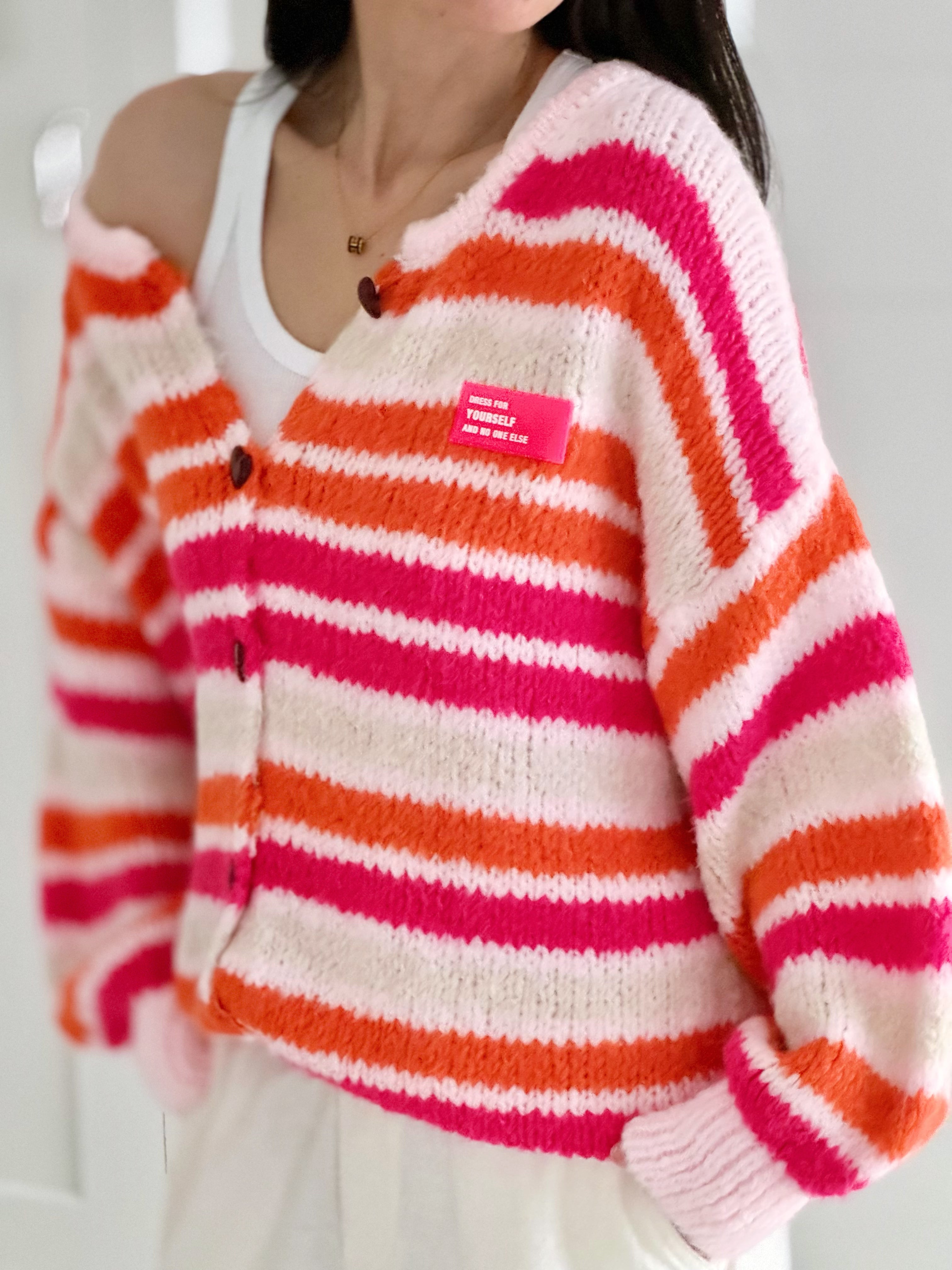 Strickjacke, Streifen, Flauschi, II, 7 Farben