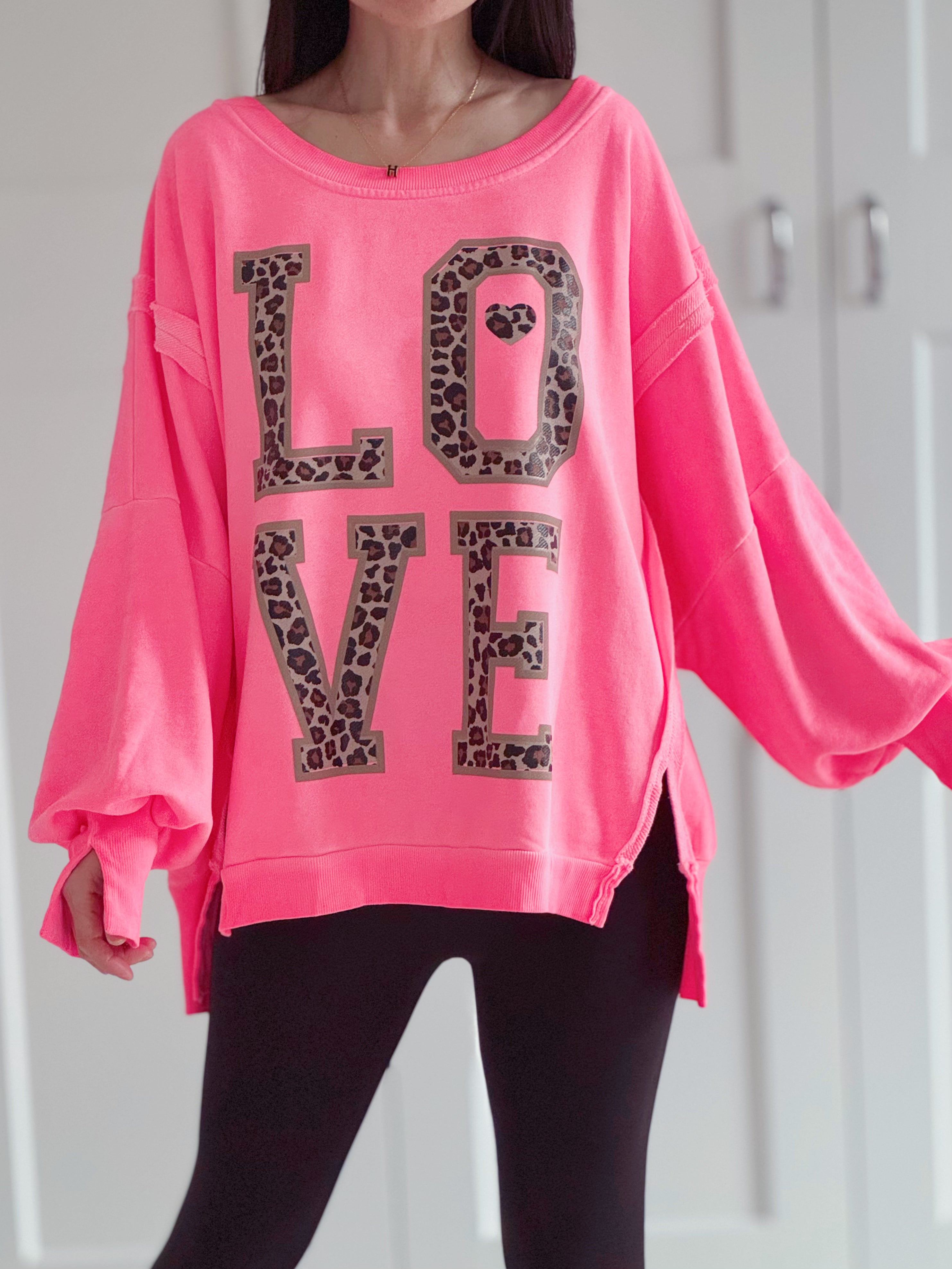 Sweatshirt, LOVE, Oversize, mit Schlitzbund, Neon