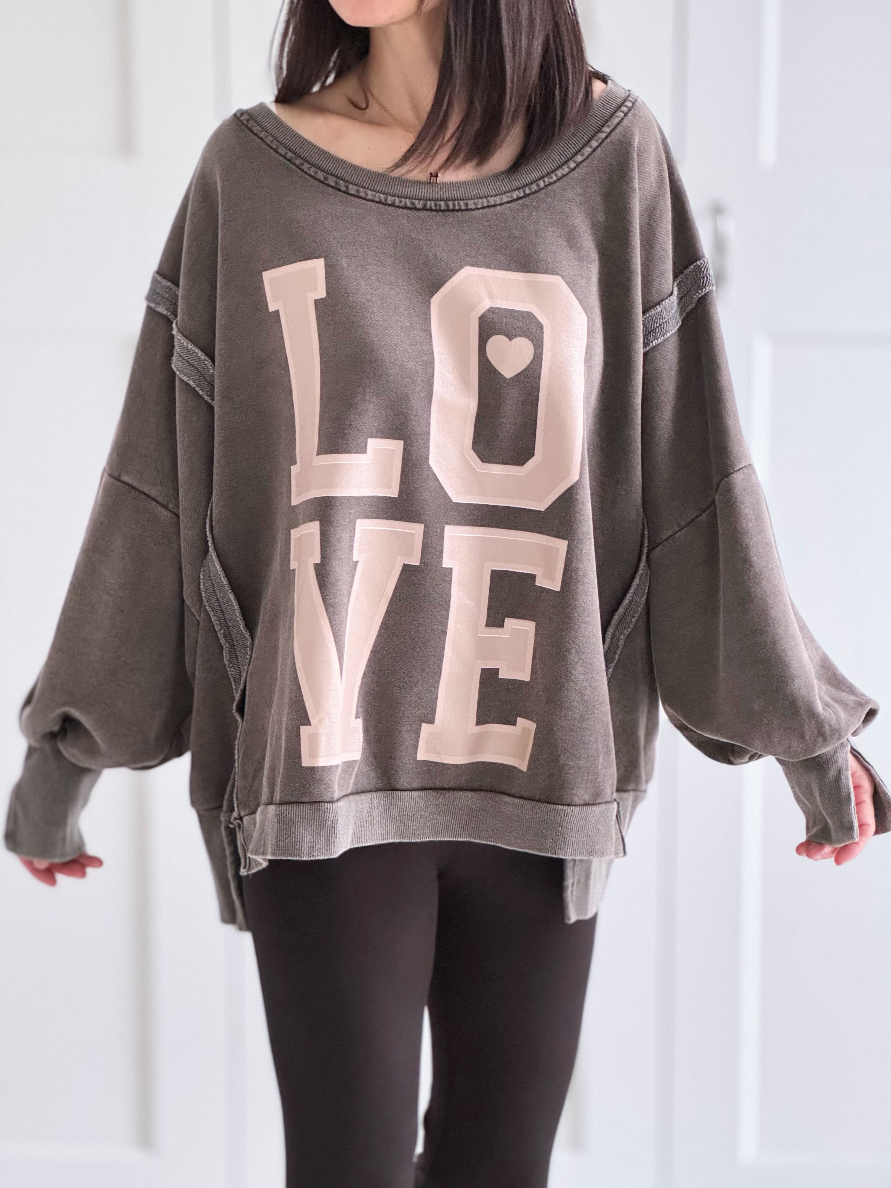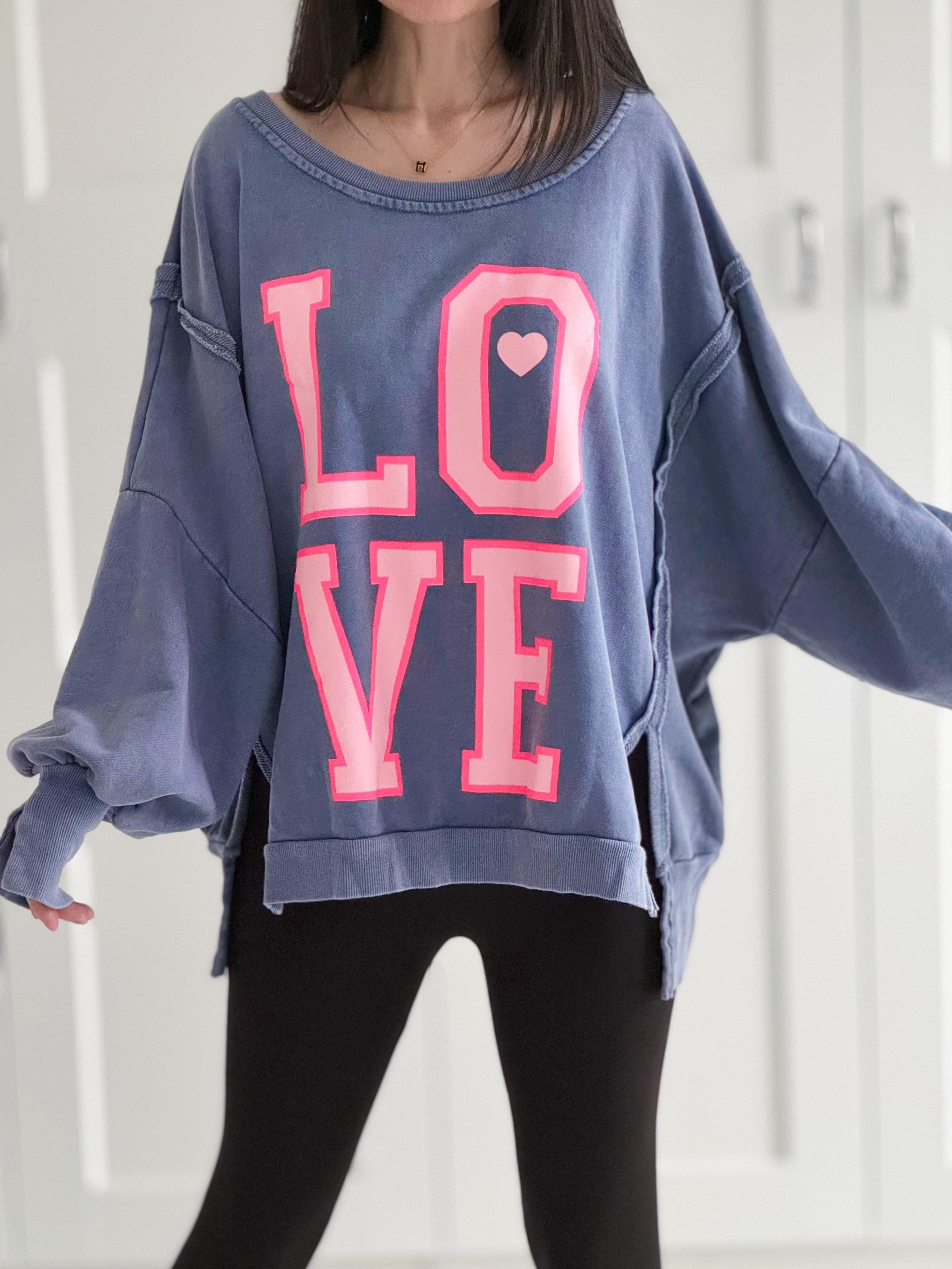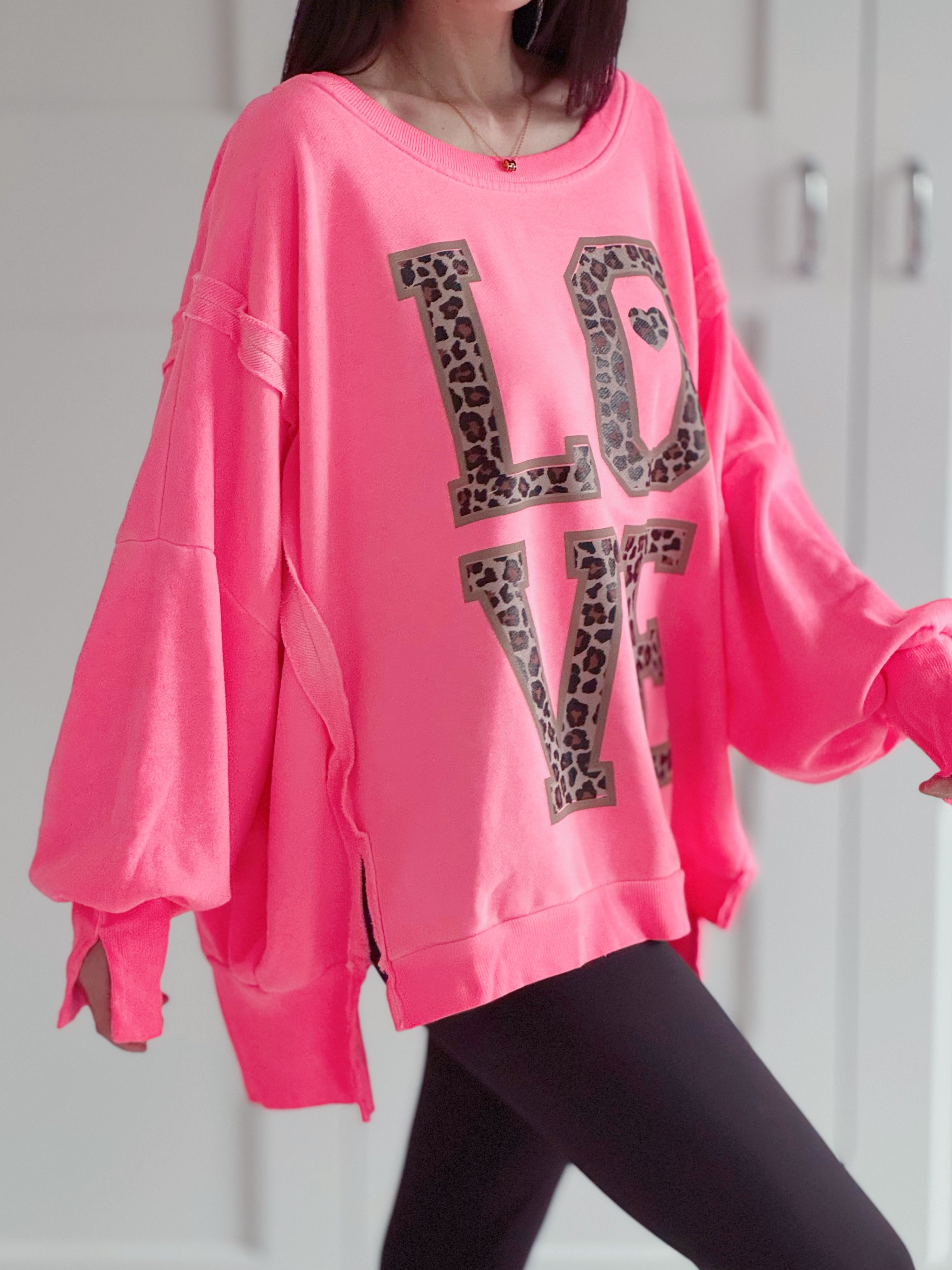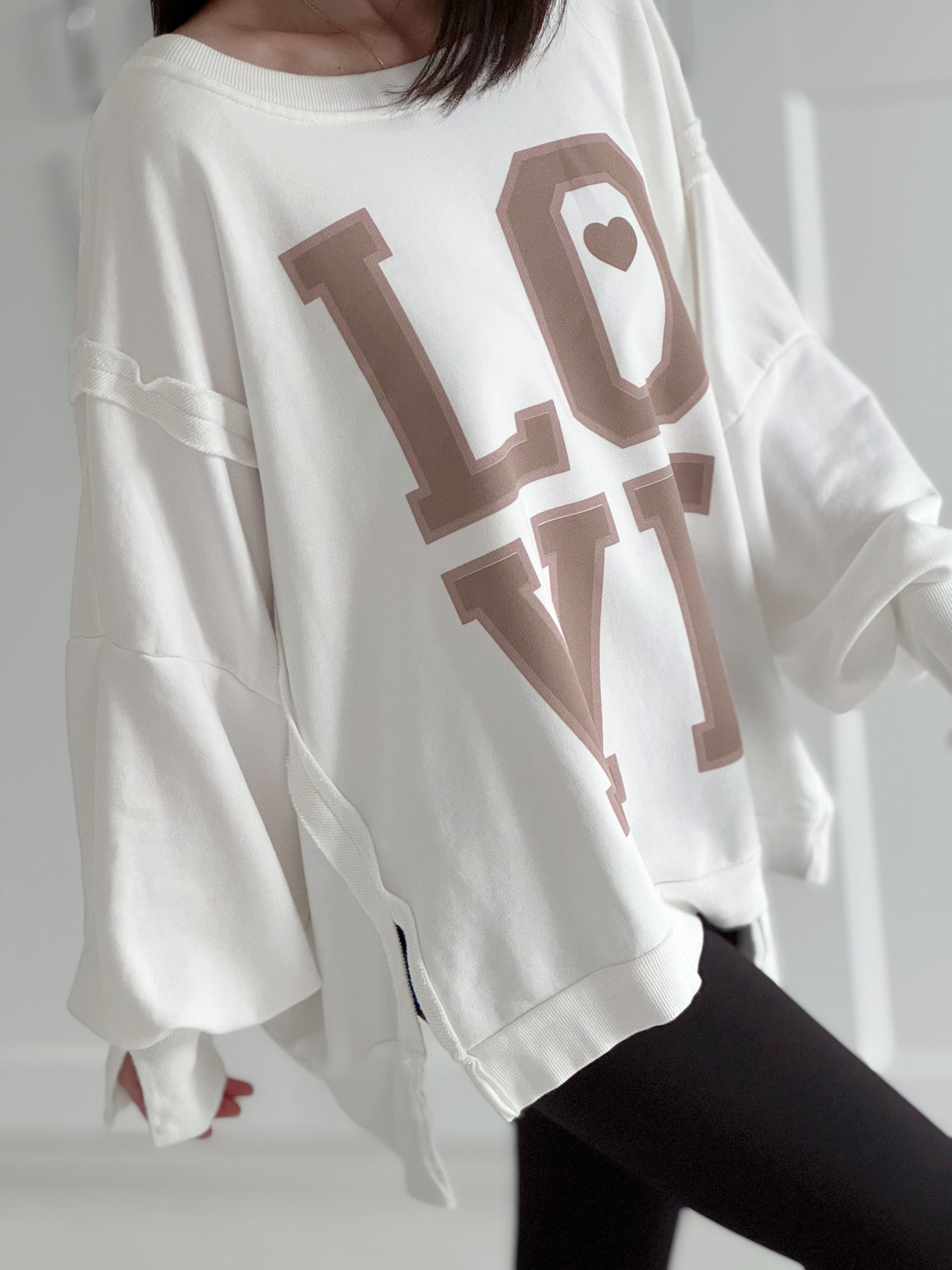 Sweatshirt, LOVE, Oversize, mit Schlitzbund, 4 Farben
