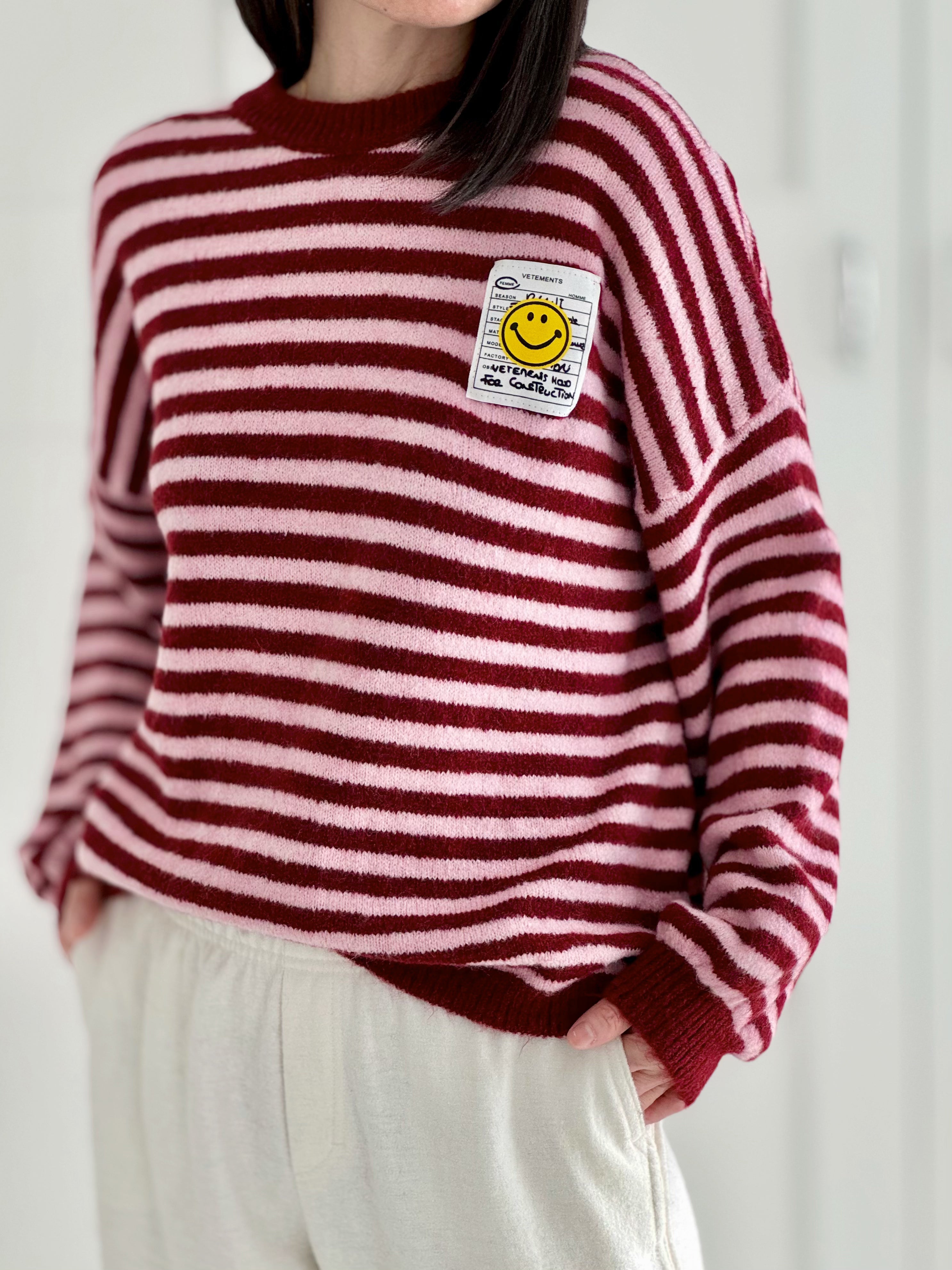 Pullover, Smiley, Streifen, Flauschi, 8 Farben