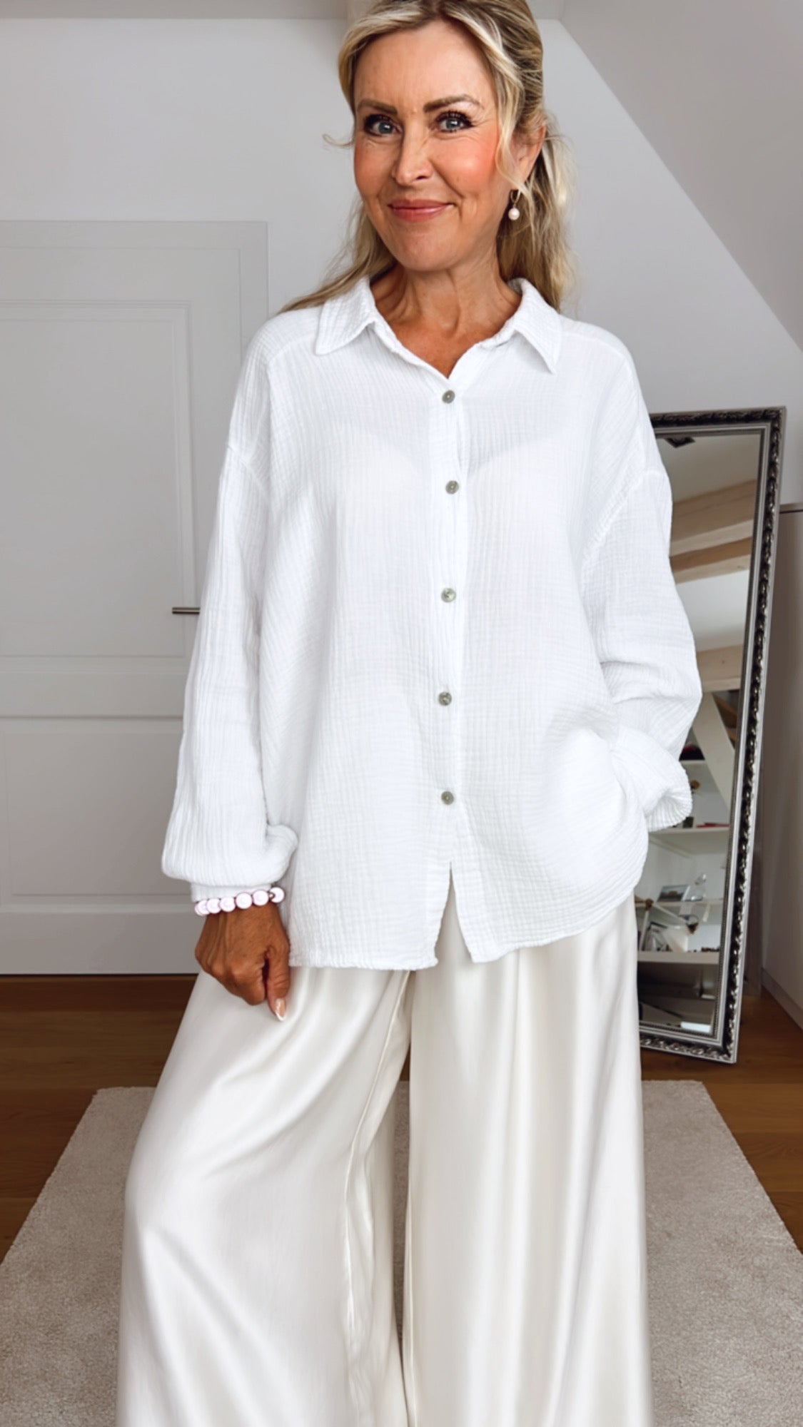 Musselin Bluse, Streifen, Oversize, 6 Farben
