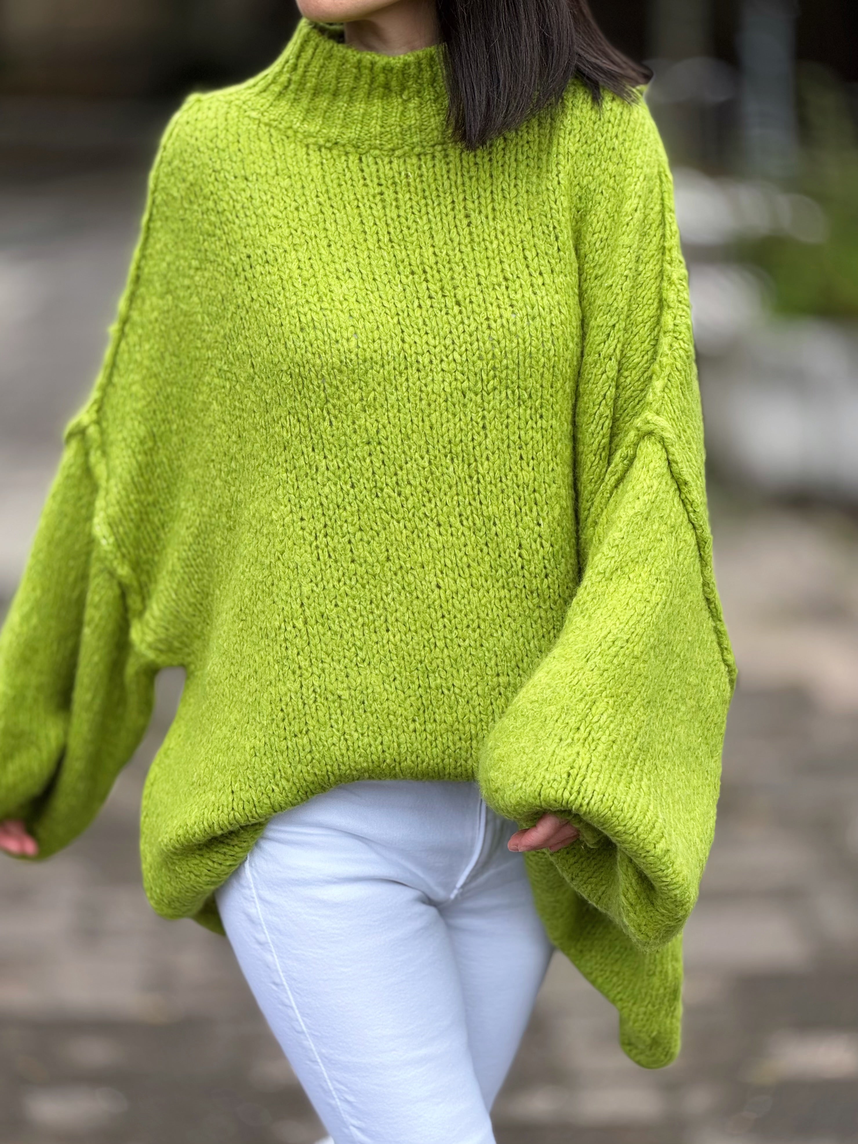Pullover, flauschi, Stehkragen, Apfelgrün