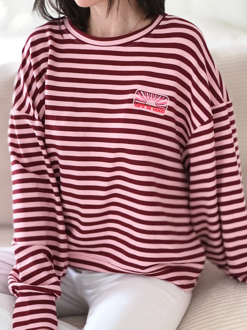 Sweatshirt, Streifen, mit Schlitzbund, 3 Farben