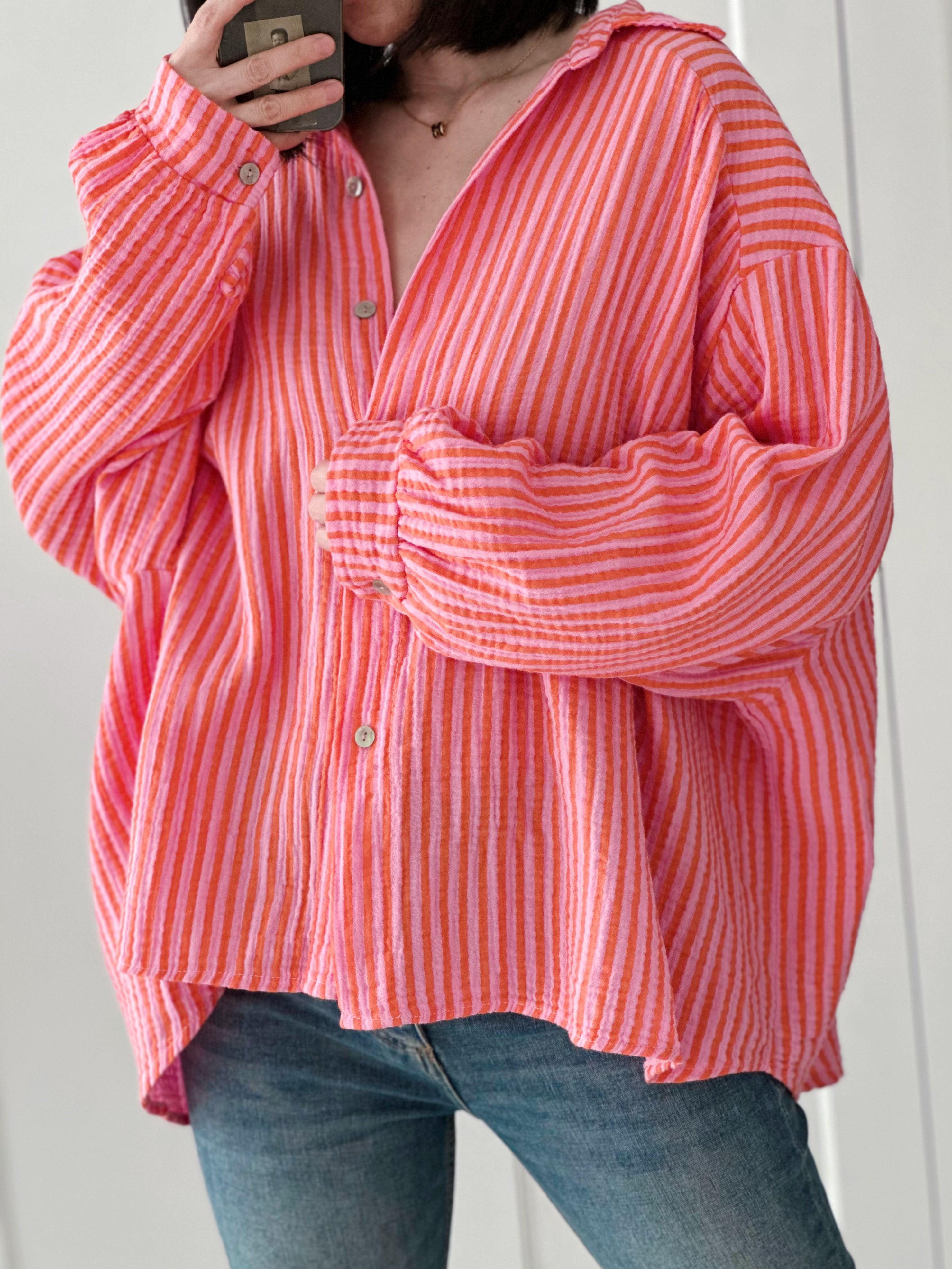 Musselin Bluse, Neon-Streifen, Gelb-Rosa