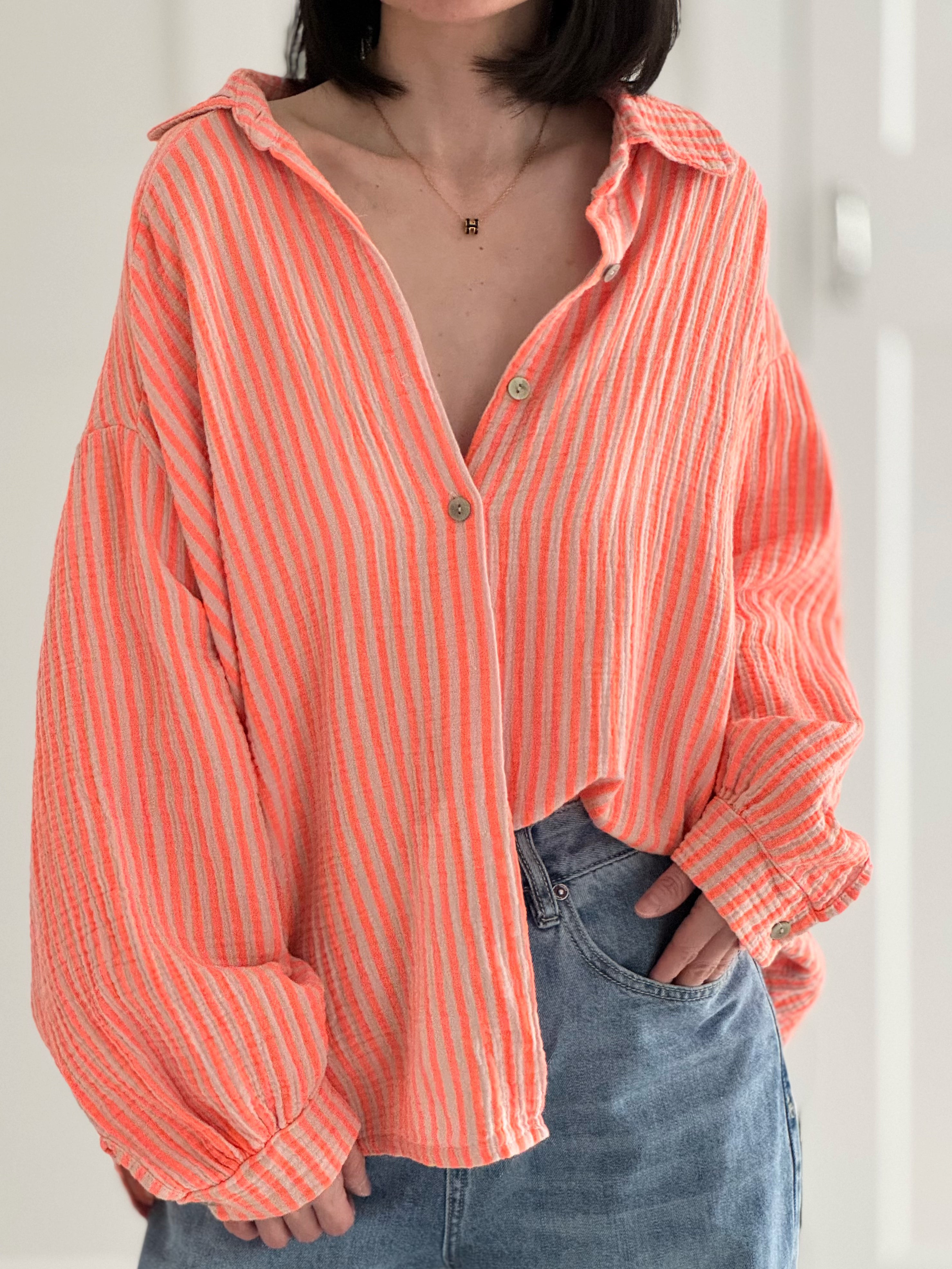 Musselin Bluse, Orange-Streifen, 3 Farben