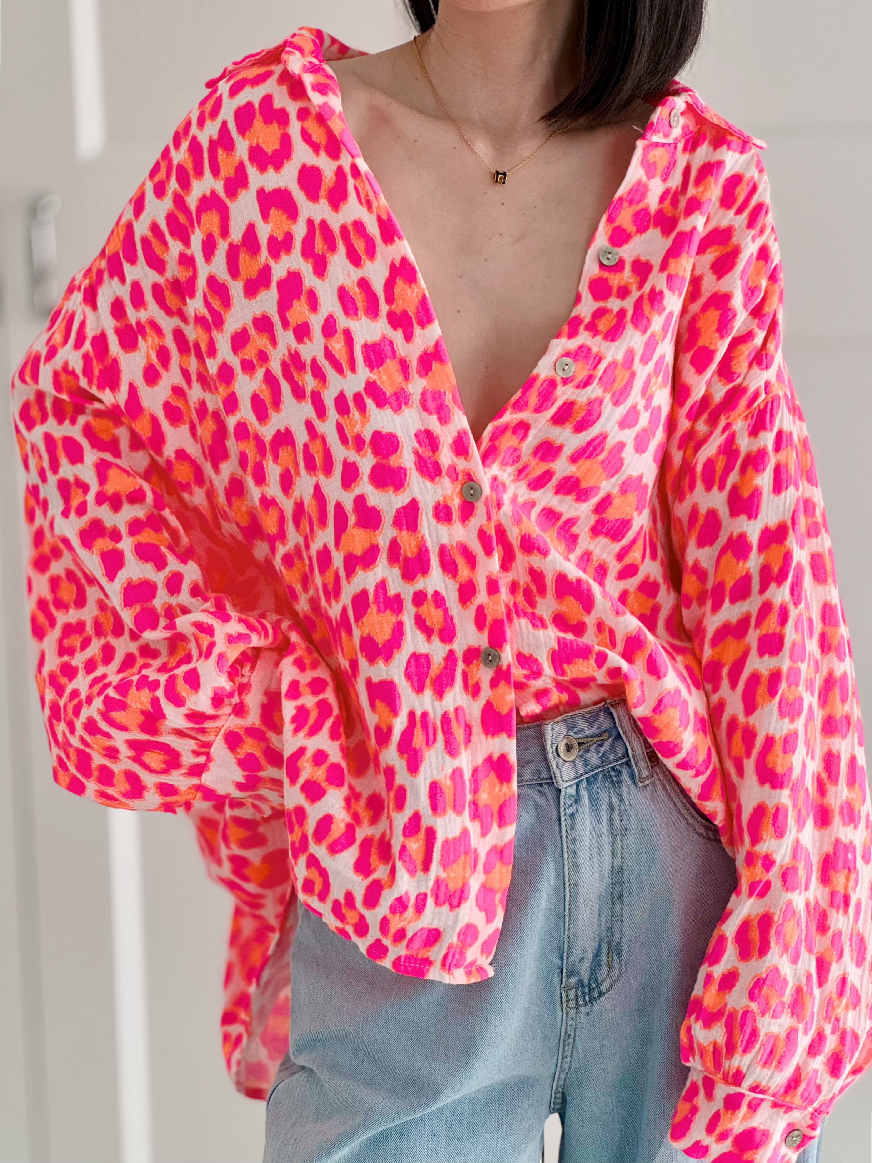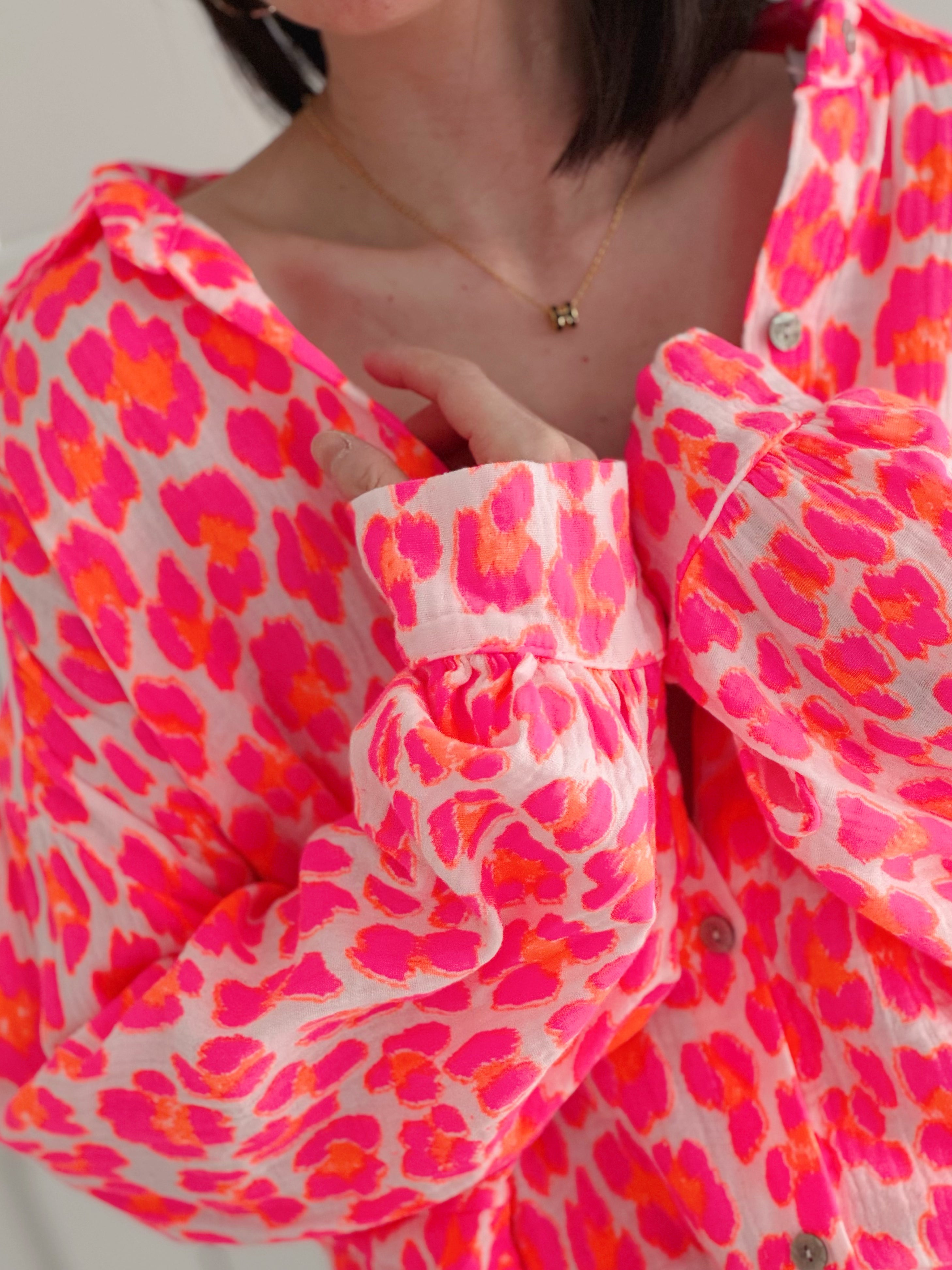 Musselin Bluse, Wild-Leo, Neon, 3 Farben