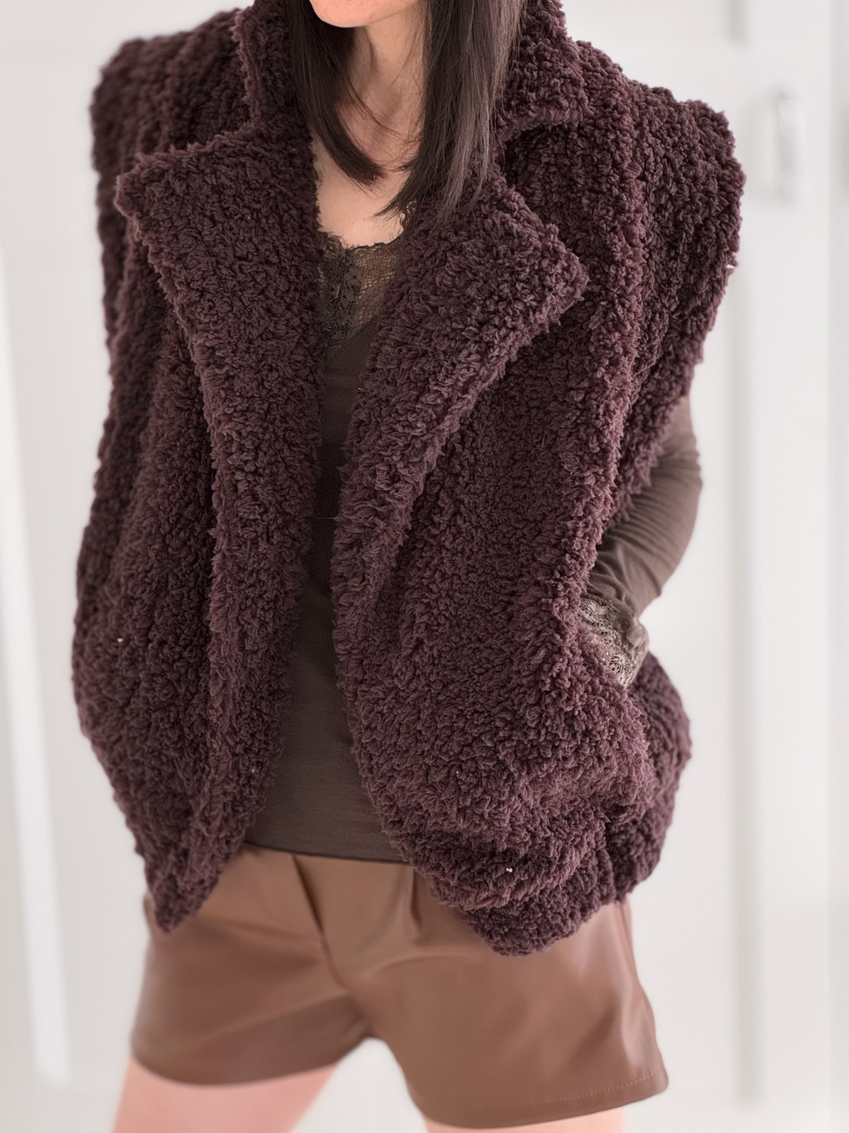 Teddyweste, Unifarbe, Schoko
