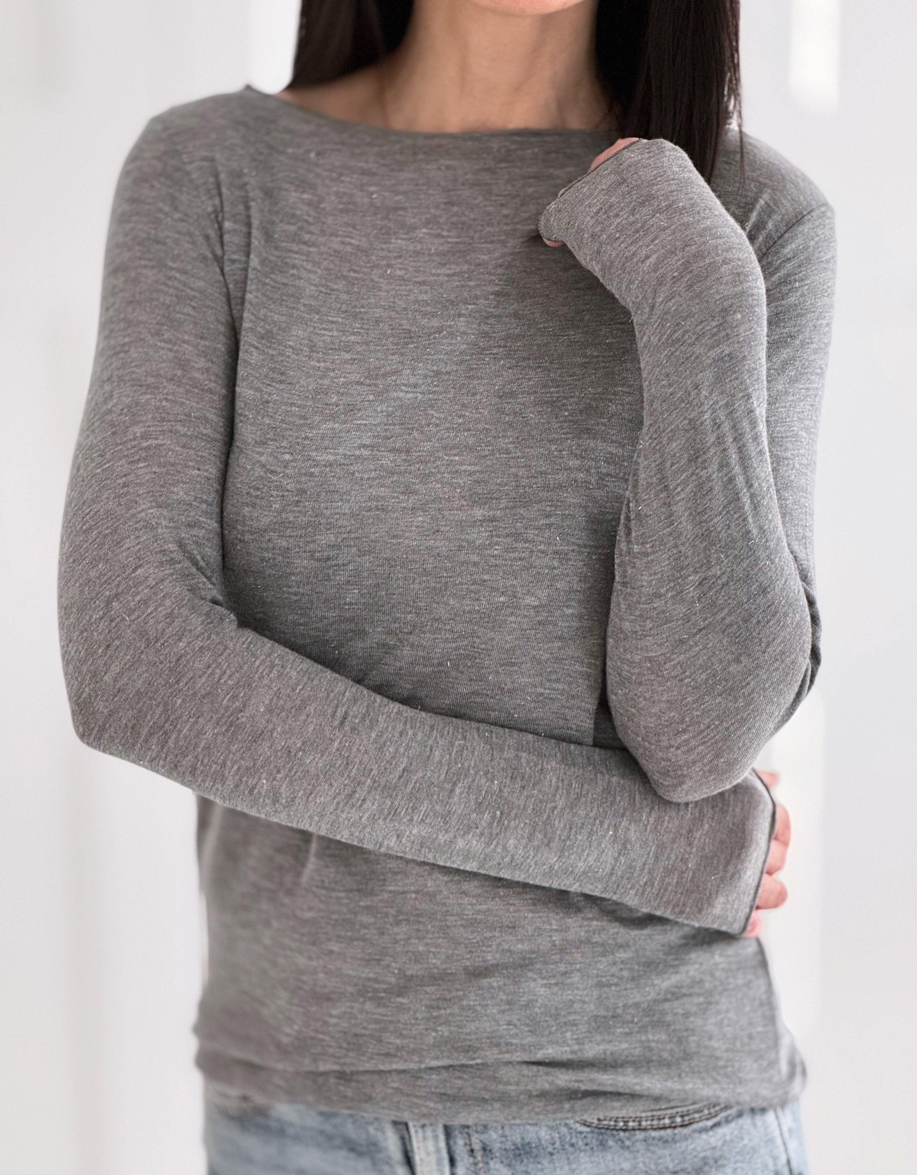 Longsleeve, Cashmere, Grau-Leo