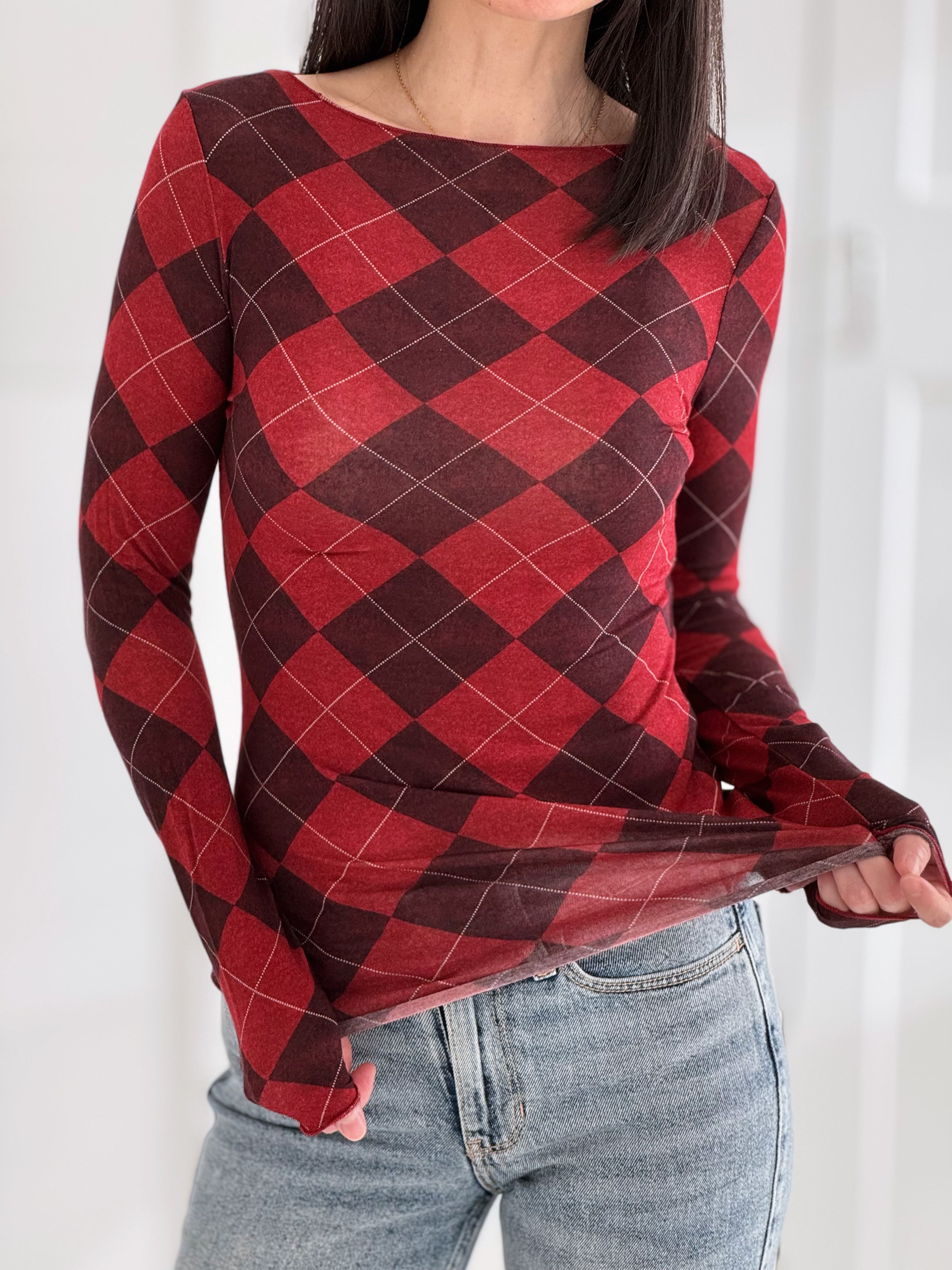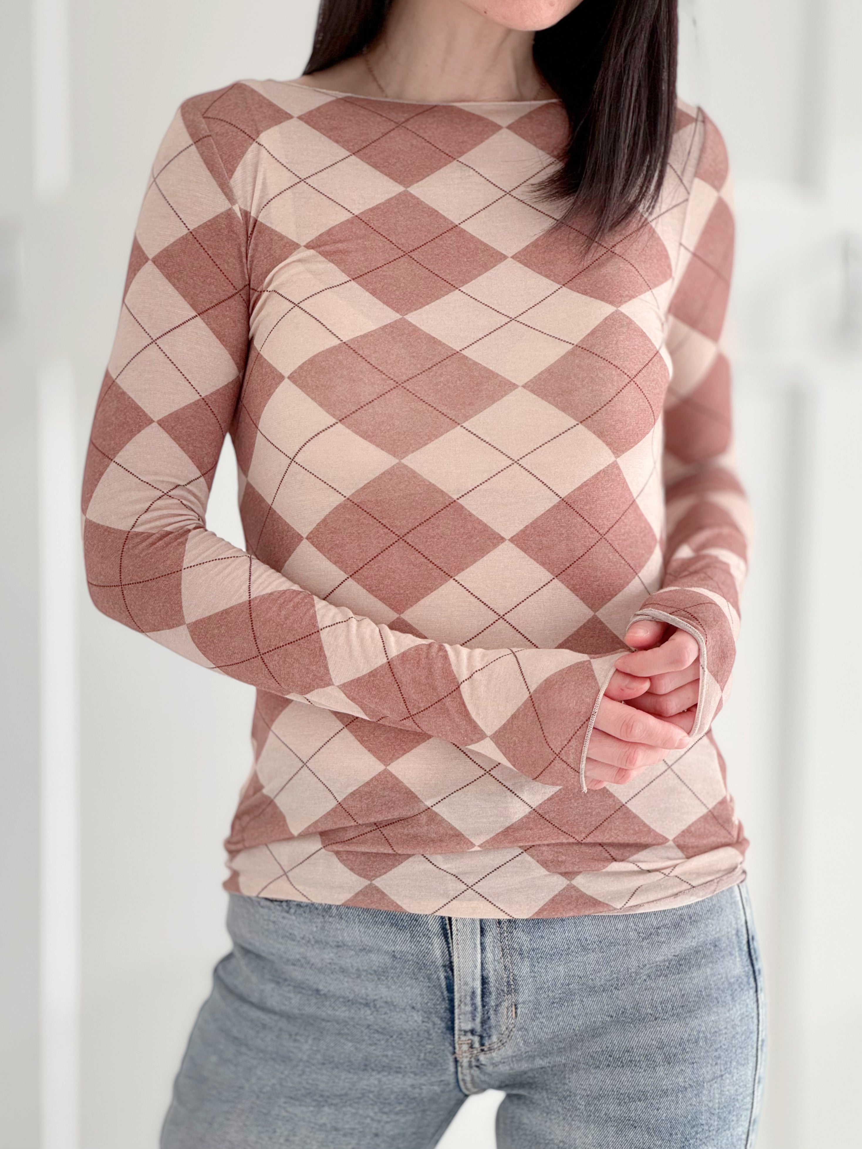 Longsleeve, Cashmere, Argyle I, 2 Farben