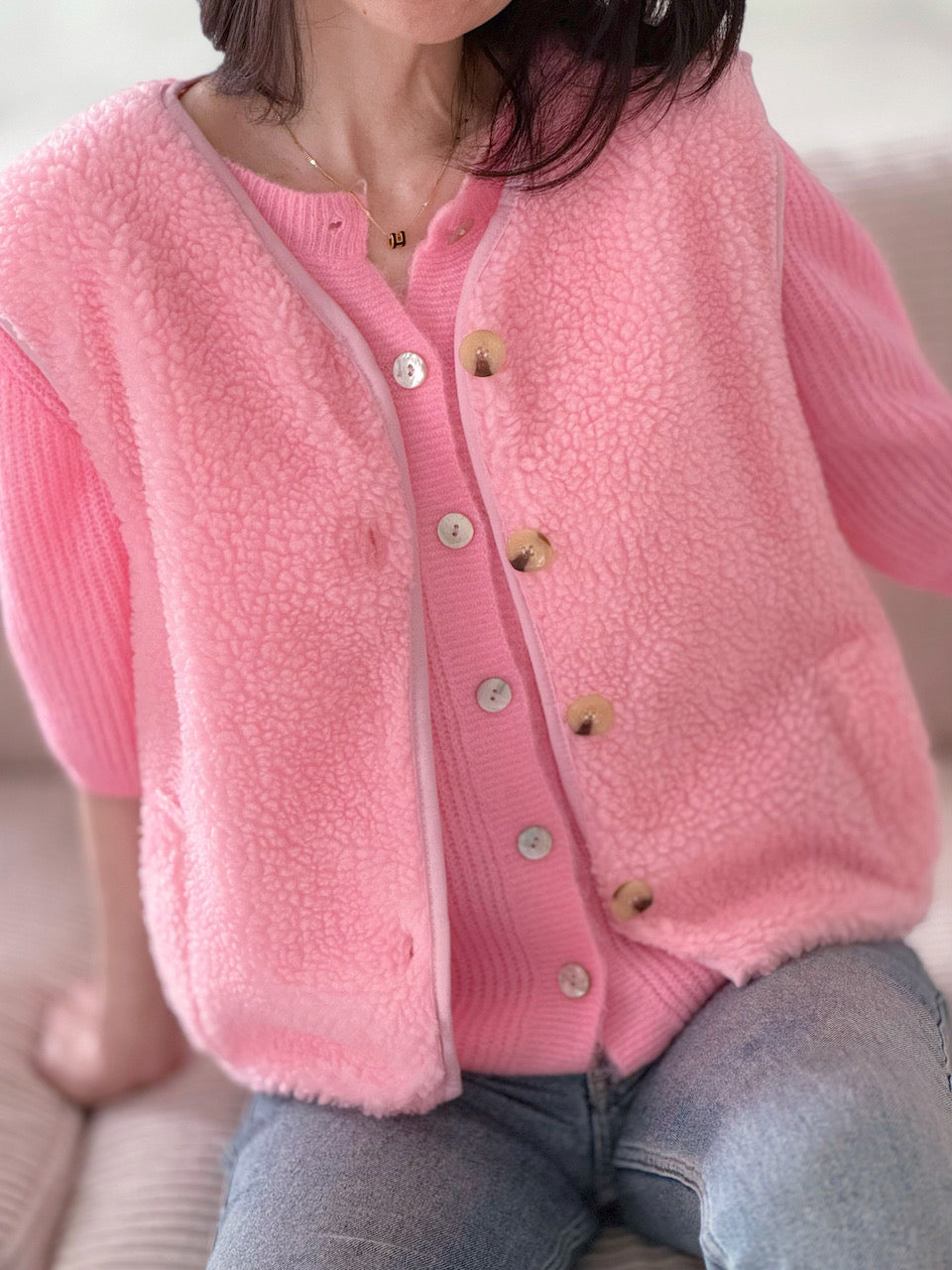 Teddyweste, Unifarbe, Rosa