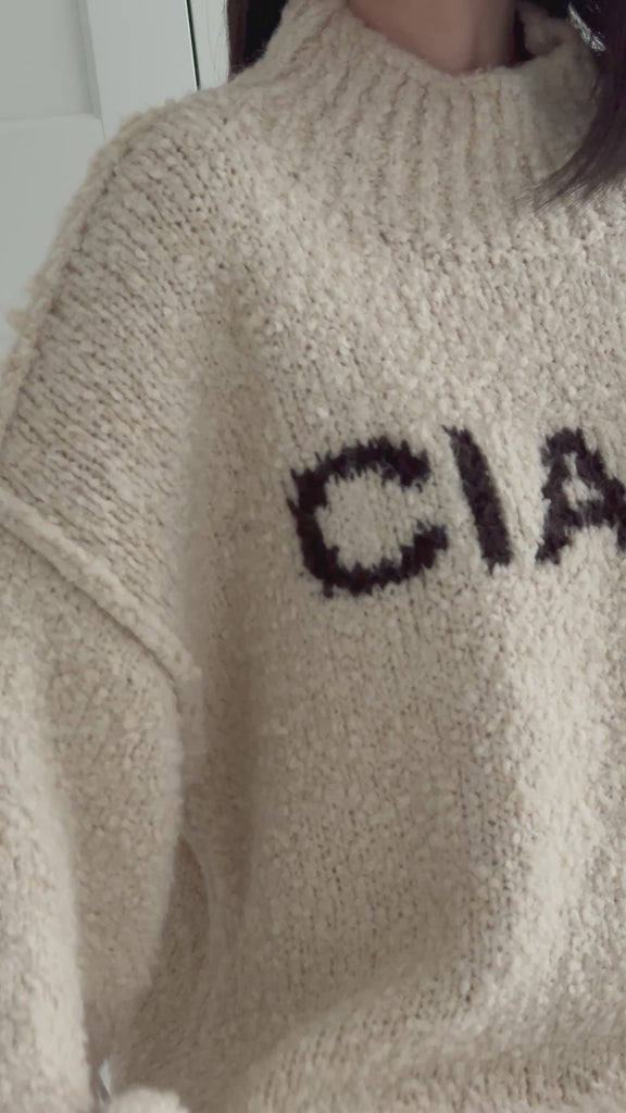 Style: Pullover, Bouclé/Teddy, mit CIAO!, Stehkragen, Drop-Schoulder