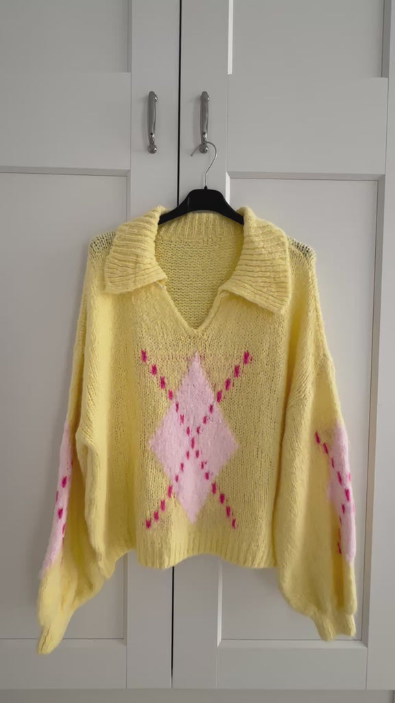 Pullover, Argyle, Polokragen, Flauschi, 5 Farben