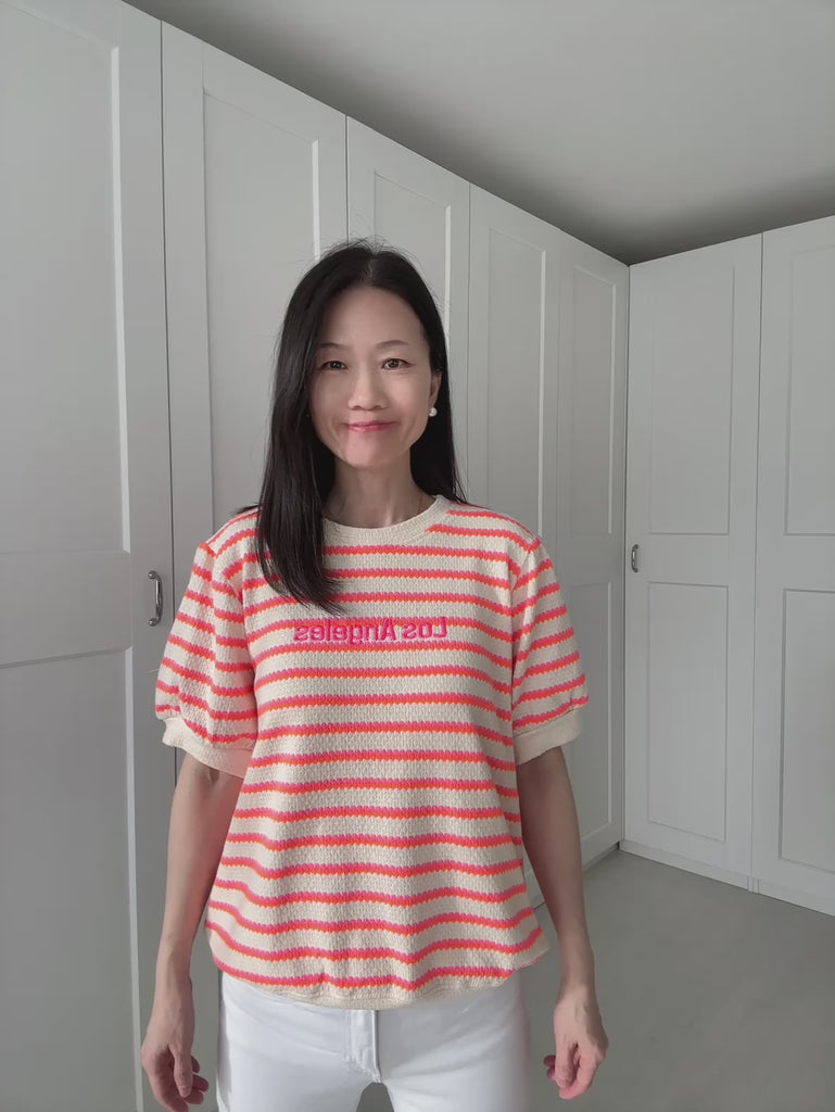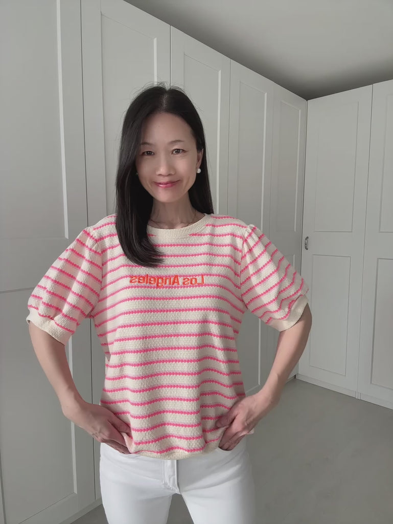 Style: Pullover, mit Los Angeles und Streifen, mit Halbarm, Rundhalsausschnitt