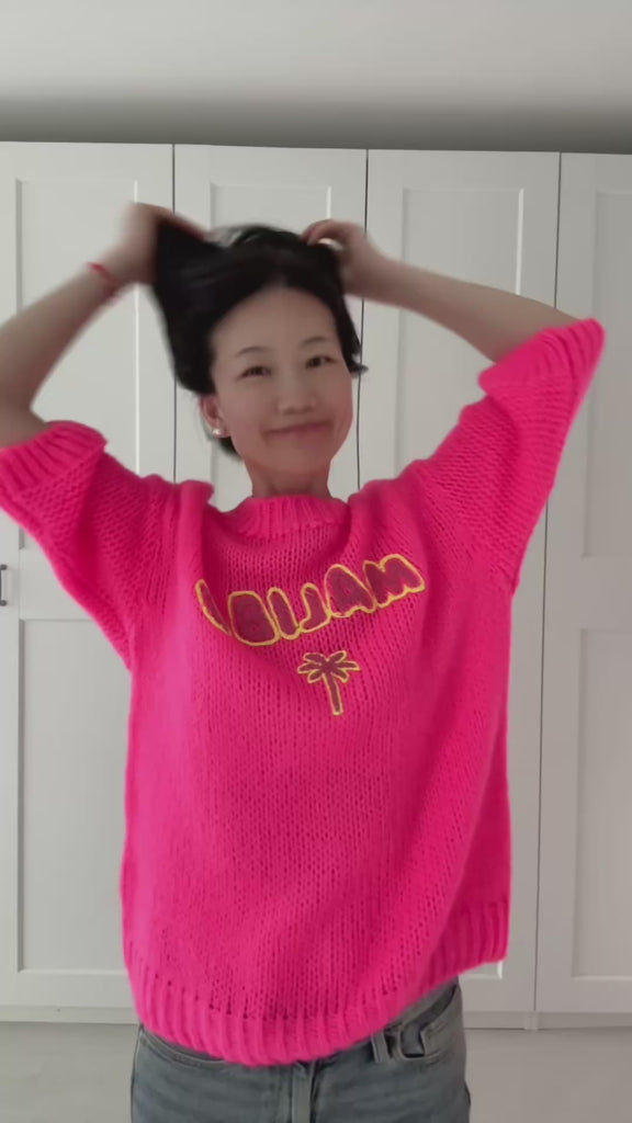 Style: Pullover, mit 3D-Malibu, mit Halbarm, Rundhalsausschnitt