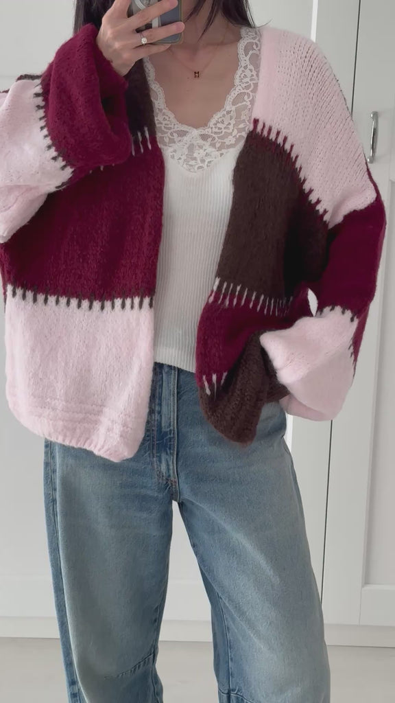 Style: Strickjacke, mit Blockstreifen, vorne offene, ohne Taschen