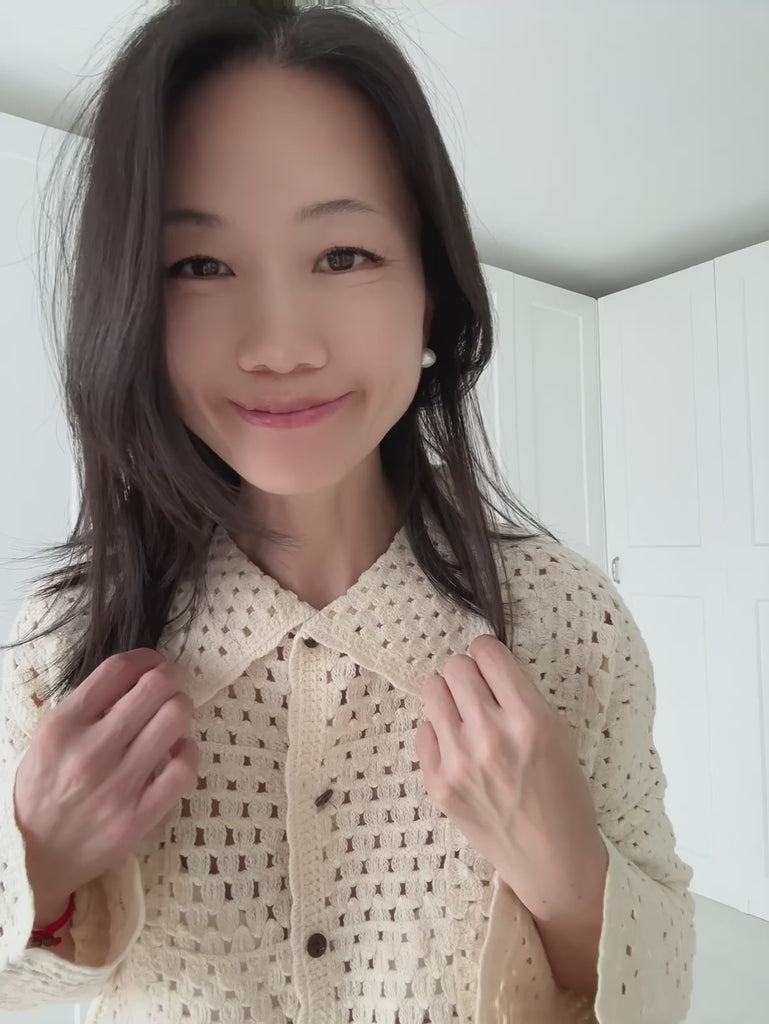 Style: Strickjacke, Lochstricken, Blusenstil, mit Knöpfen, ohne Taschen