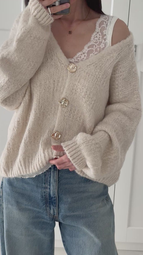 Style: Strickjacke, mit Zierknöpfen, ohne Taschen